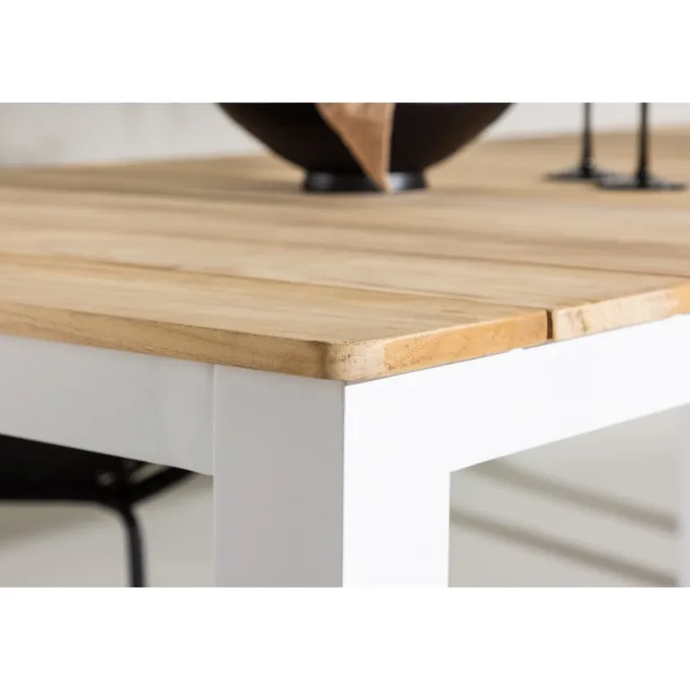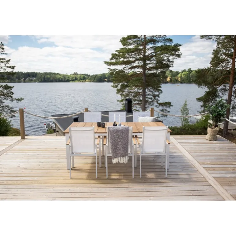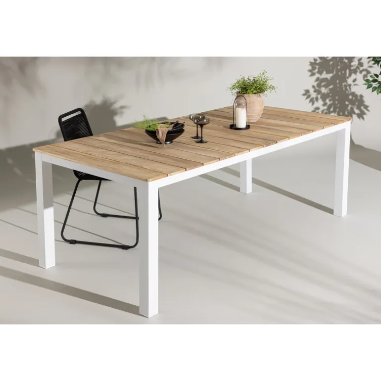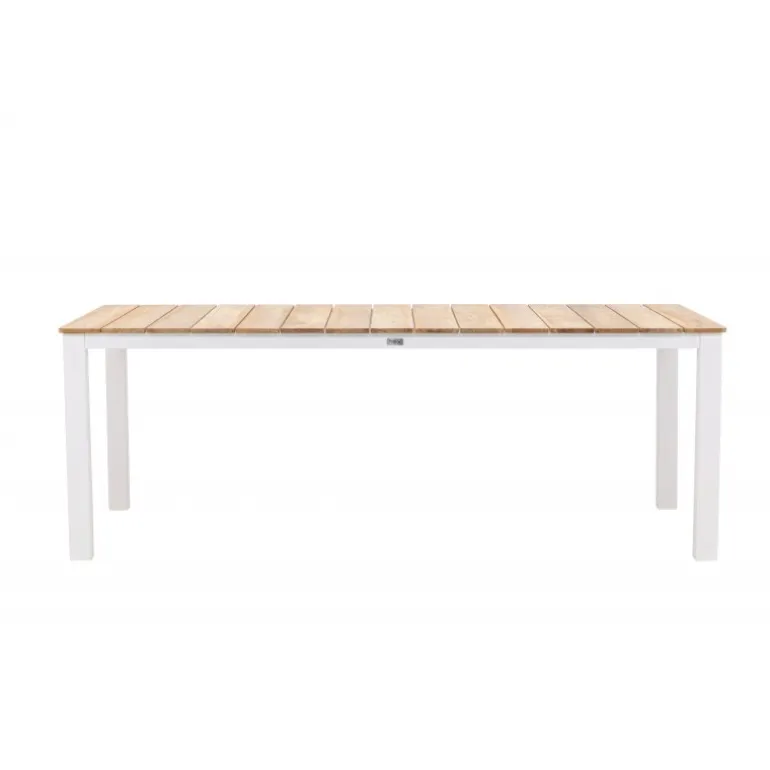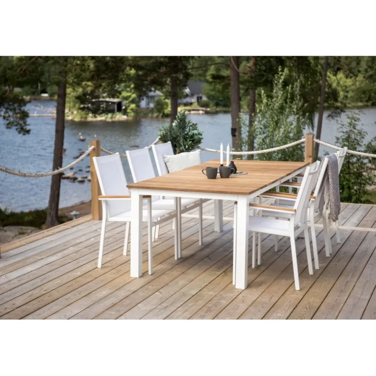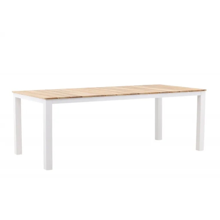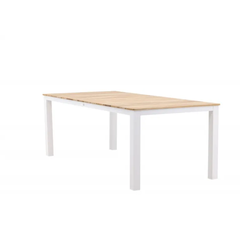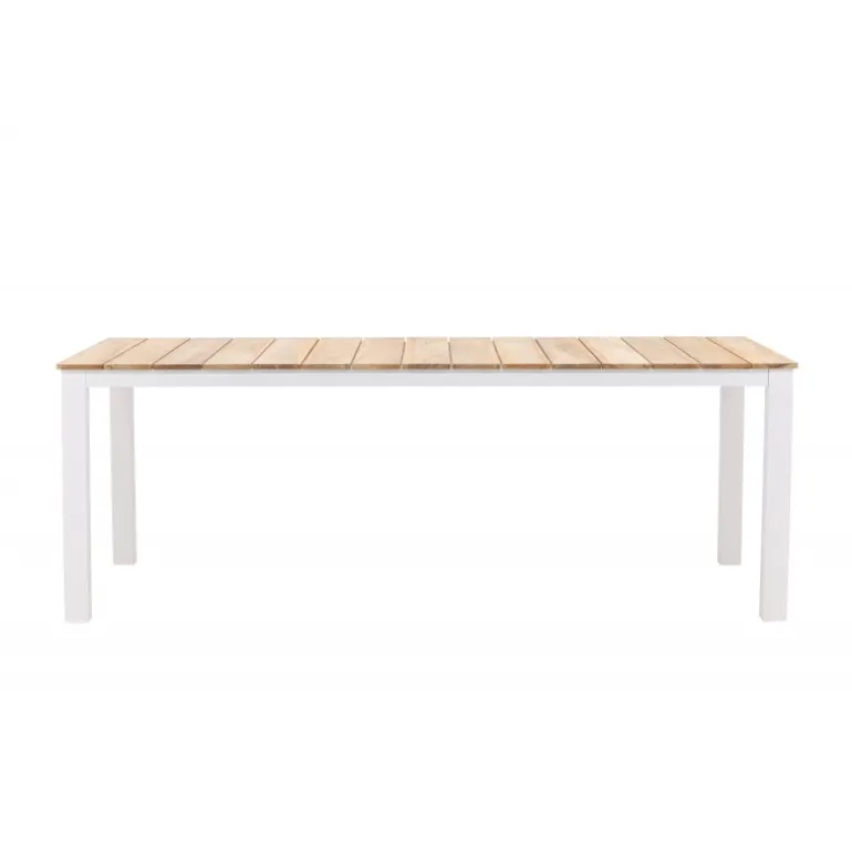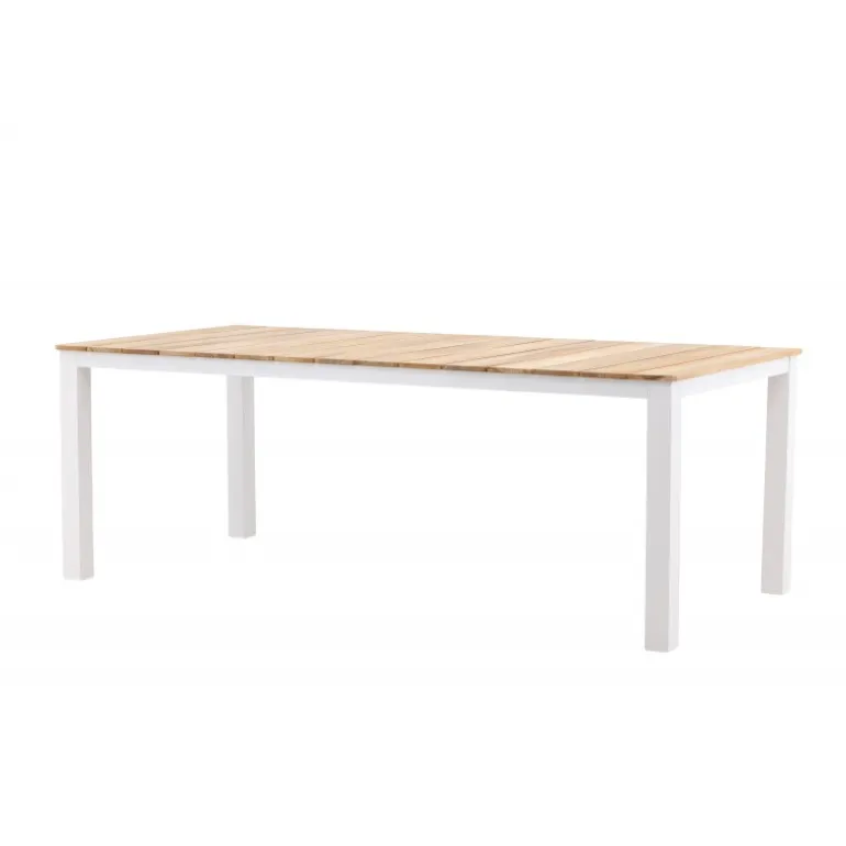 Mexico – et rektangulært spisebord, der gør succes lige såvel til hverdag som til fest! Dette lækre spisebord har en moderne teakbordplade og en hvid metalunderdel. Det gennemtænkte design er både stilfuldt og holdbart, så her får du et bord, der vil holde i mange år! Følg vores vedligeholdelsesråd for bedst holdbarhed. Plejeråd: Vores teakmøbler er fremstillet af certificeret teak, der er dyrket til formålet og ikke ødelagt fra følsomme regnskove. Som en af de mest holdbare træsorter indeholder teak meget olie, som sædvanligvis er nødvendig, så materialet ikke sprækker. Fordi teak naturligt indeholder meget olie, behøver møblerne ikke at blive imprægneret så ofte.