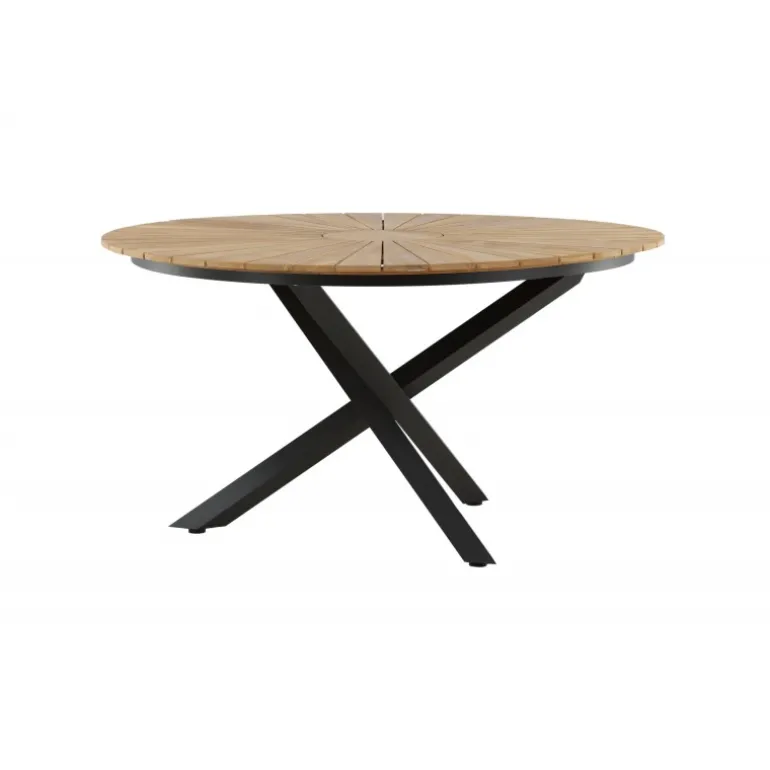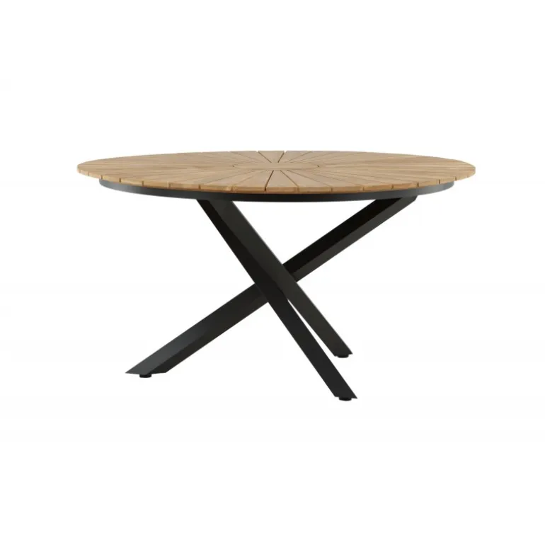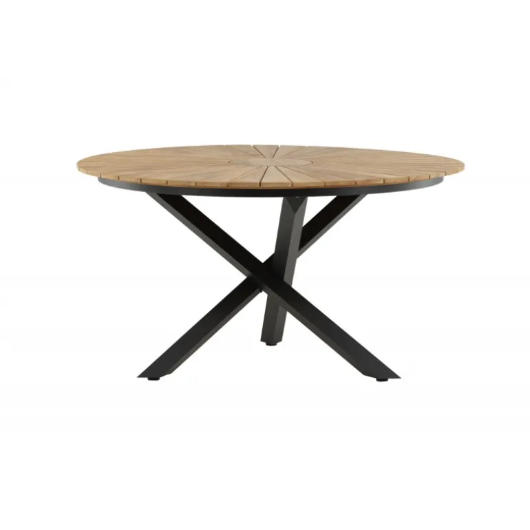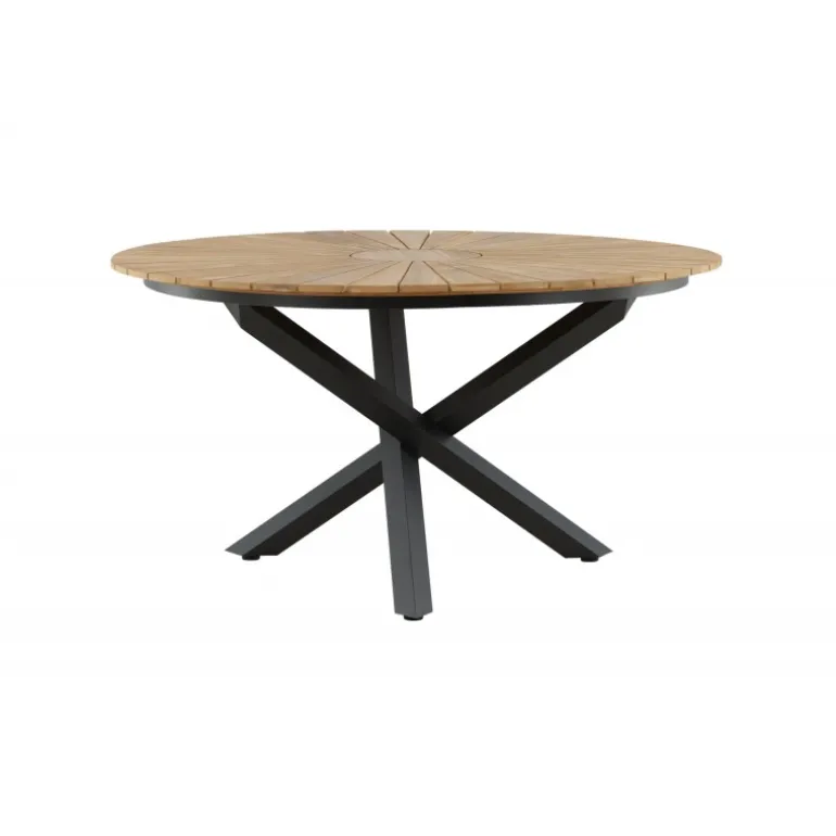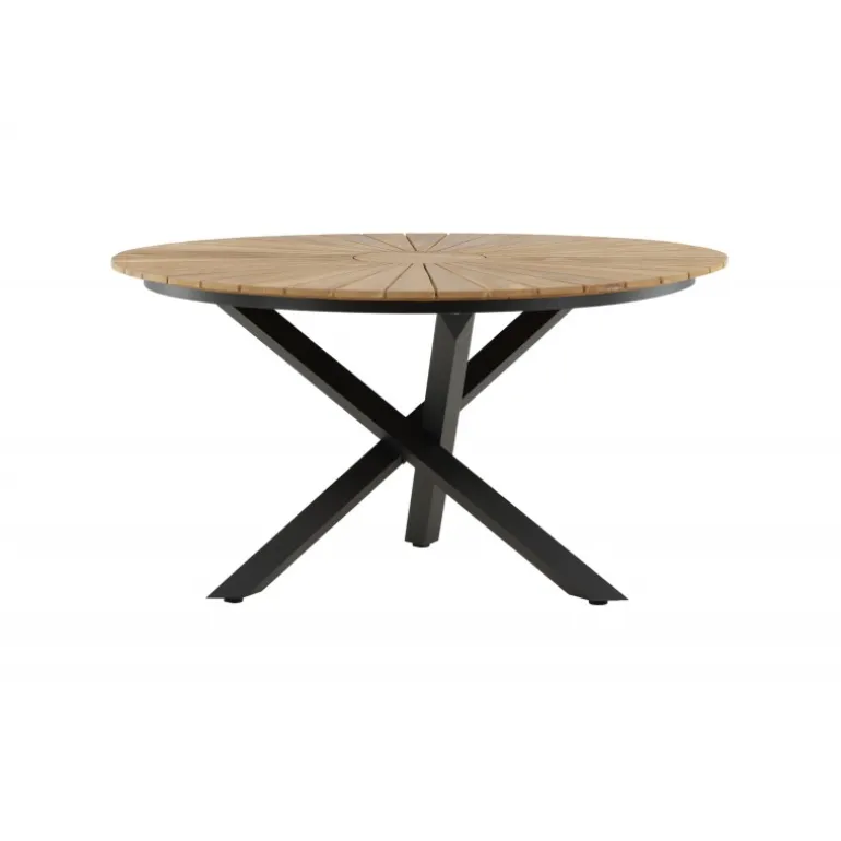 - Smukt design: Rund bordplade i teak og sort metal understel.