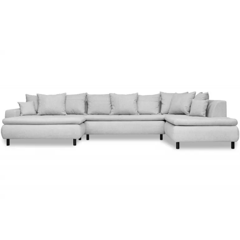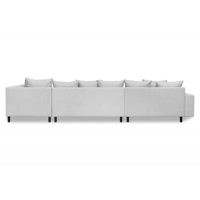 Miami U-sofa med Venstrevendt chaiselong betrukket med slidstærkt stof. En sofa i moderne og ekstraordinært design, som skiller sig ud fra mængden af ensartede sofaer. En kæmpe flyder sofa med ekstraordinært meget siddeplads samt god komfort. Sofaen har en blød koksgrå siddehynde med flotte kvadrat syninger, og kommer med pyntepuder. Med denne stilfulde sofa sikrer du siddeplads til hele familien.