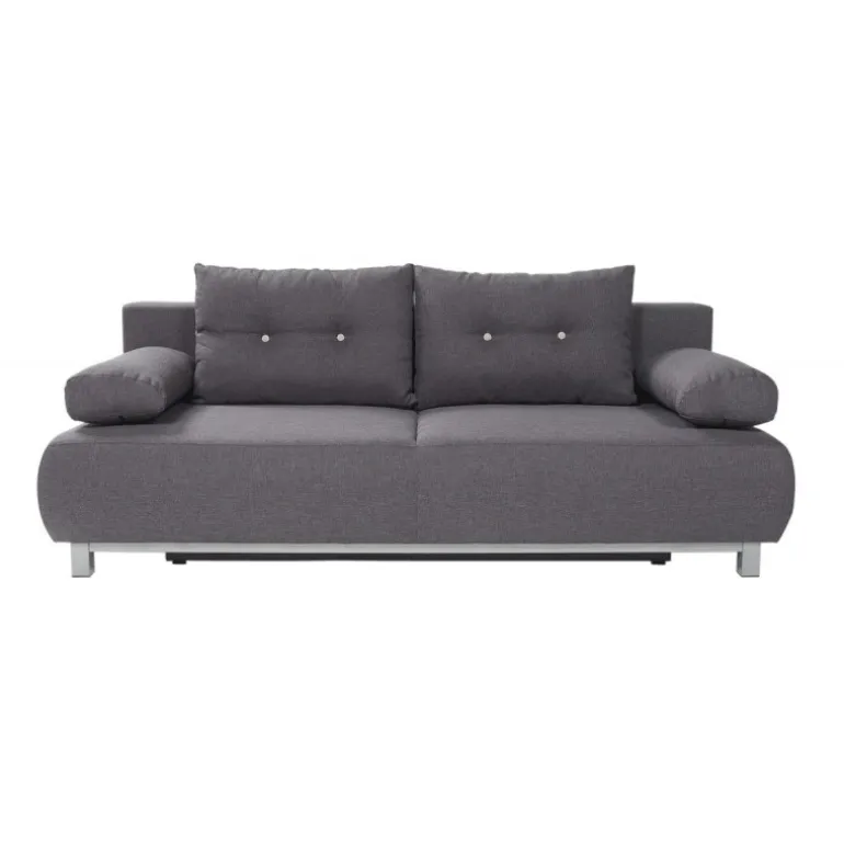 Mikado sovesofa med rummeligt magasin og udslånings funktion som forvandler sofaen til en bekvemmelig soveplads for 2. Sofaen der med sit smarte og unge design, egner sig særlig godt til teenage værelset. Mikado sovesofaen har løse armlæn og ryghynder med beige kontrast knapper. Mikado har springindlæg med en medium/hård liggekomfort. Sofaen er betrukket et slidstærkt strukturvævet møbeltekstil i gråt mørk mix og er hævet på metal ben.