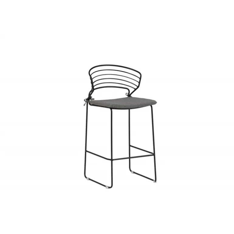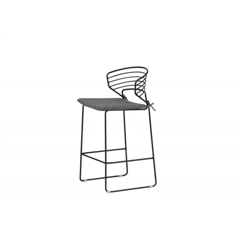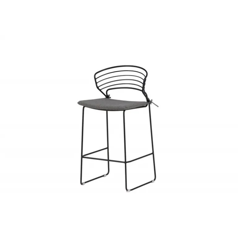 Milano Barstolen fra Milano-serien skaber et imponerende indtryk og vil være et moderne blikfang på din terrasse! Det skandinaviske design er trendy med dets bløde nordiske former. Sædet er blødt polstret i gråt polyesterstof, og benrammen er stilfuldt slank i sort stål med en lav ryglæn og integreret fodstøtte for ekstra komfort. Komfortable og iøjnefaldende, disse barstole ser fantastiske ud ved barbordet på terrassen! Stolen er stabelbar.