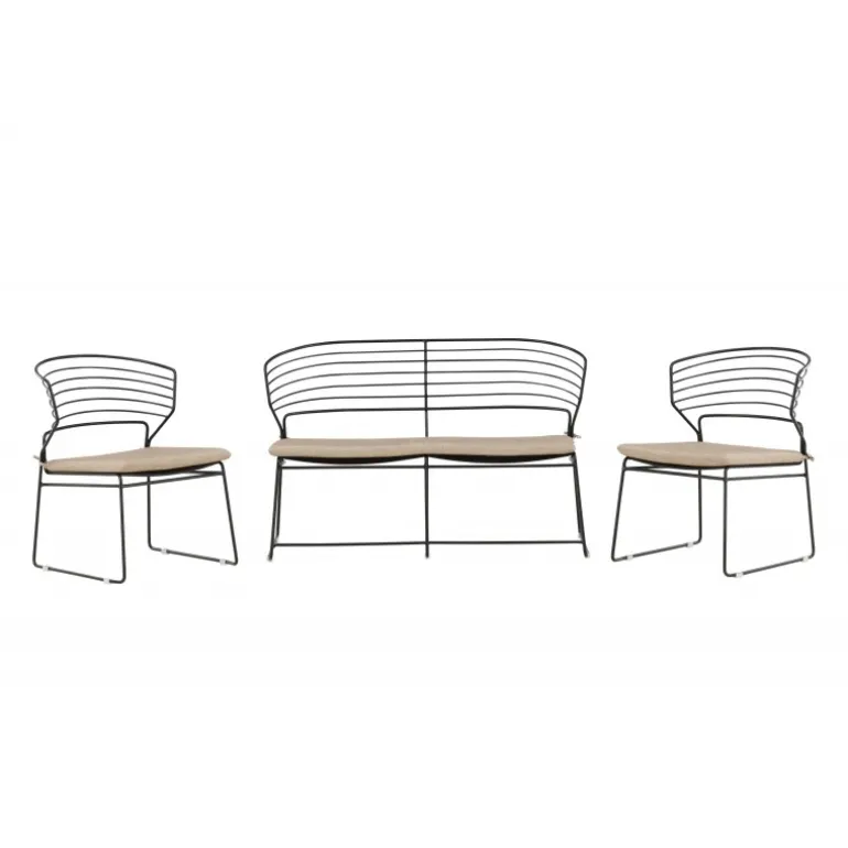 Denne loungegruppe fra Milano-serien skaber et imponerende indtryk på din terrasse og bliver hurtigt et moderne blikfang! Det skandinaviske design er tidløst med sine bløde nordiske former og minimalistiske stil. Sædet er blødt polstret i gråt polyesterstof, og benrammen er stilfuldt slank i sort stål med en lav rygstøtte. Sættet inkluderer en to-personers sofa og to lænestole. Saml dine kære og nyd sene sommeraftener sammen i en komfortabel loungegruppe, der også dekorerer din terrasse!