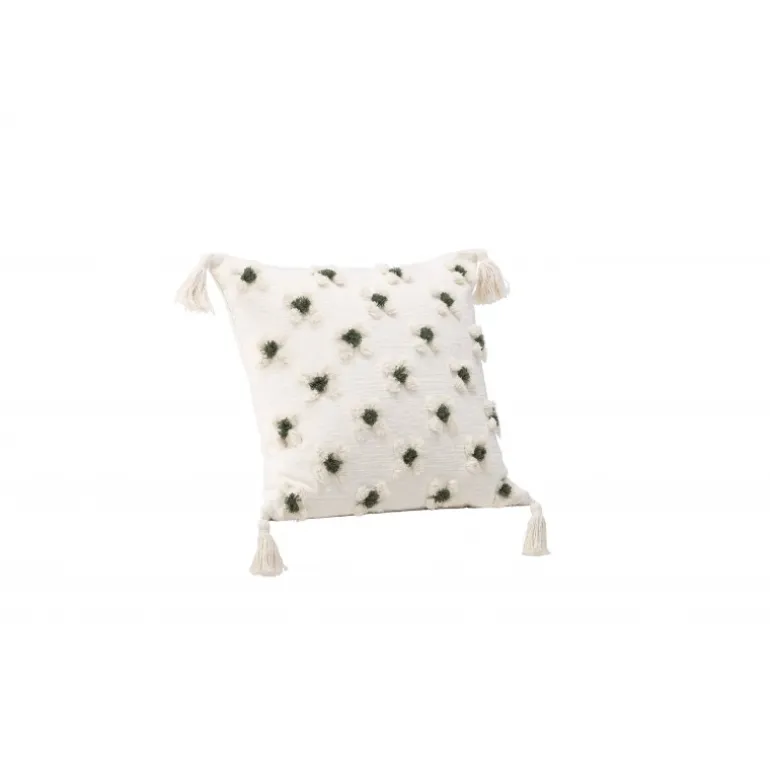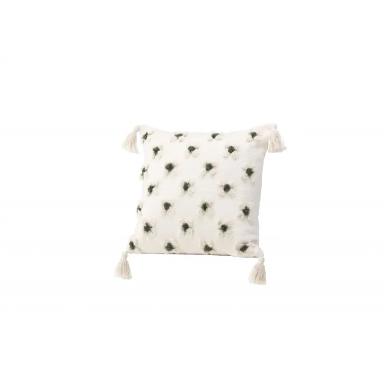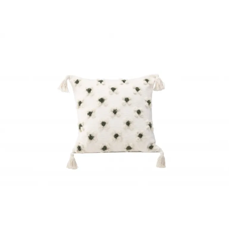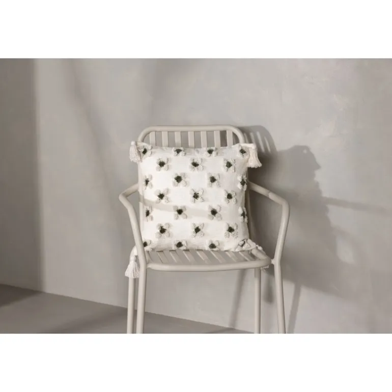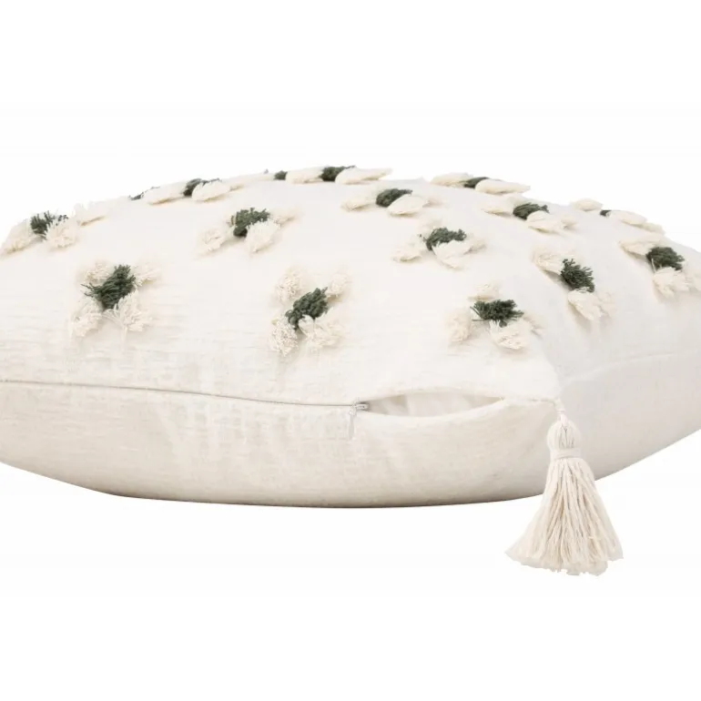 Millie Pudebetræk er en fantastisk tilføjelse til din sofa eller lænestol! Dette kvadratiske pudebetræk i hvid basulum har et charmerende blomstermønster i tuftet grønt og hvidt stof, der giver puden en lækker struktur. Med hvide kvaster i hvert hjørne får puden et nostalgisk udtryk, og den skjulte lynlås i bunden gør betrækket nemt at fjerne og vaske. Stoffet er lavet af polychenille, hvilket bidrager til en smagfuld og holdbar tekstur. Skab en hyggelig atmosfære i rummet med hjemlige puder!