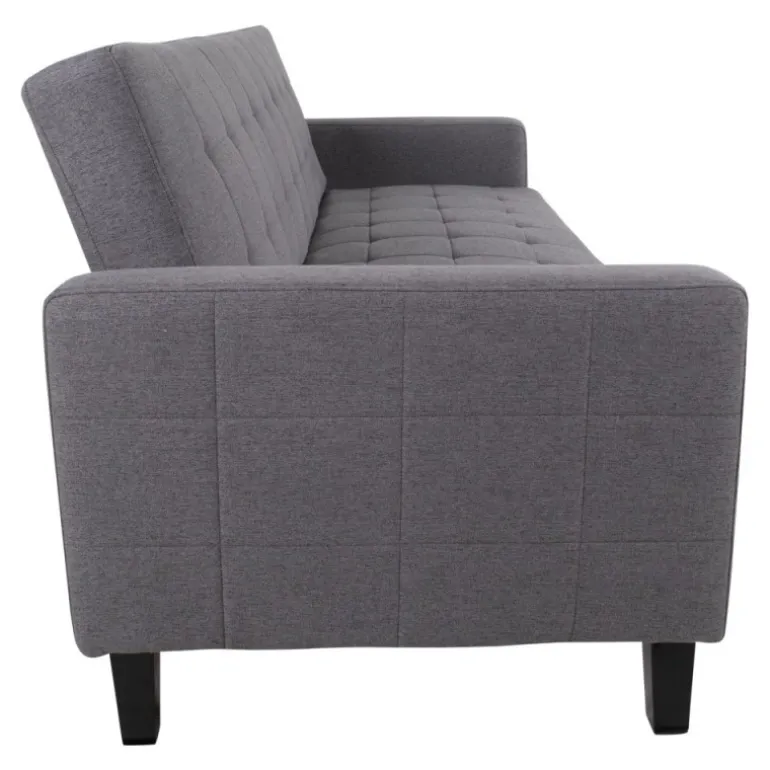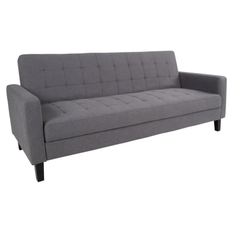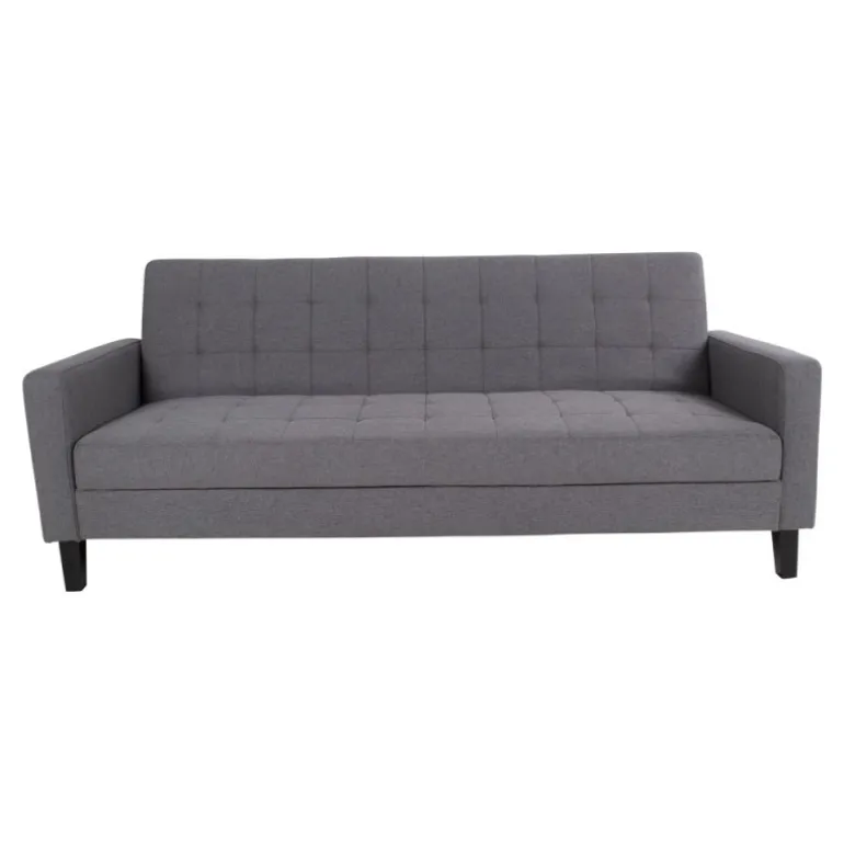 Sovesofa i mørkegrå med ben i birketræ. Mulighed for opbevaring under sædet.
