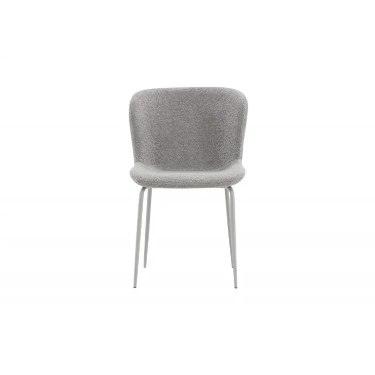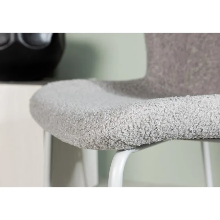 Modesto – Vores populære spisestol, der er både tidløs og komfortabel! Skab en indbydende atmosfære i hjertet af hjemmet med denne bløde spisestol i skandinavisk design. Stolen er fuldt beklædt i lysgråt boucle-stof med stilfulde smalle ben i sort metal. Den let afrundede ryg og den stoppede sædepude giver ekstra komfort og gør det muligt at nyde lange, behagelige måltider ved spisebordet. Det skal føles rart at sætte sig ned til et godt måltid!