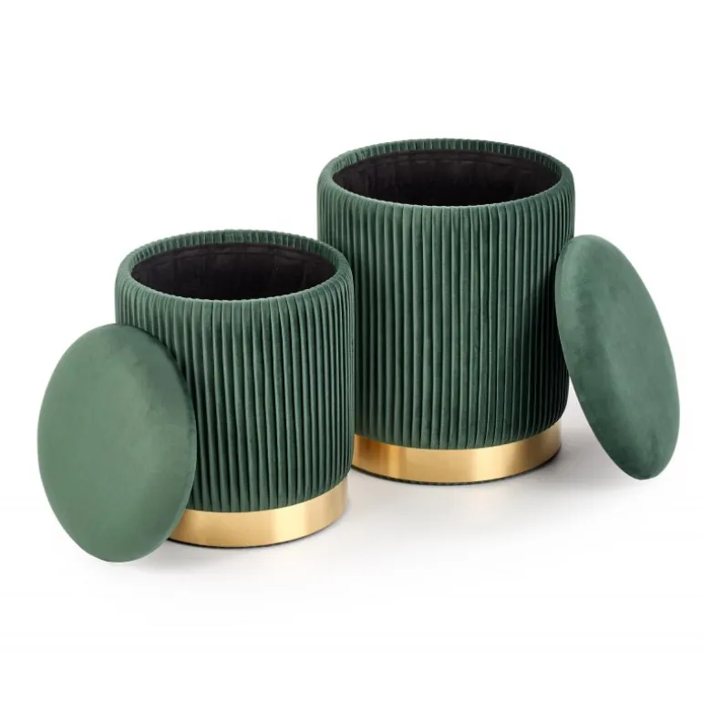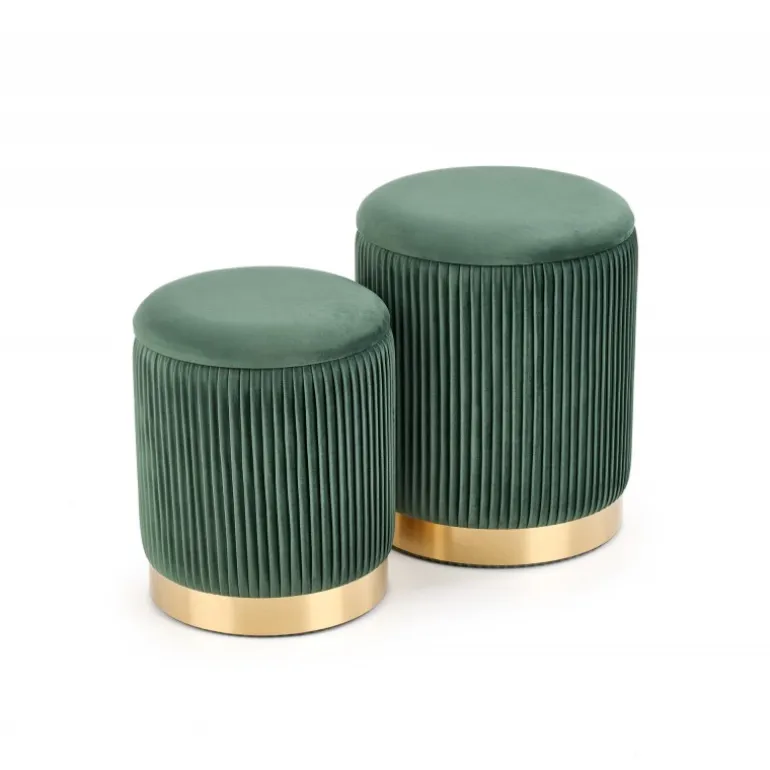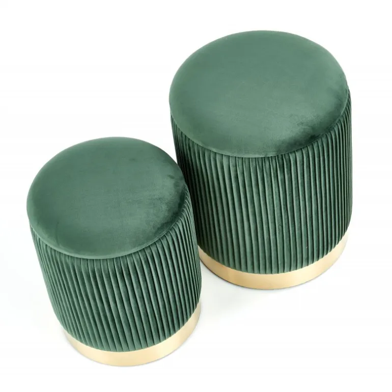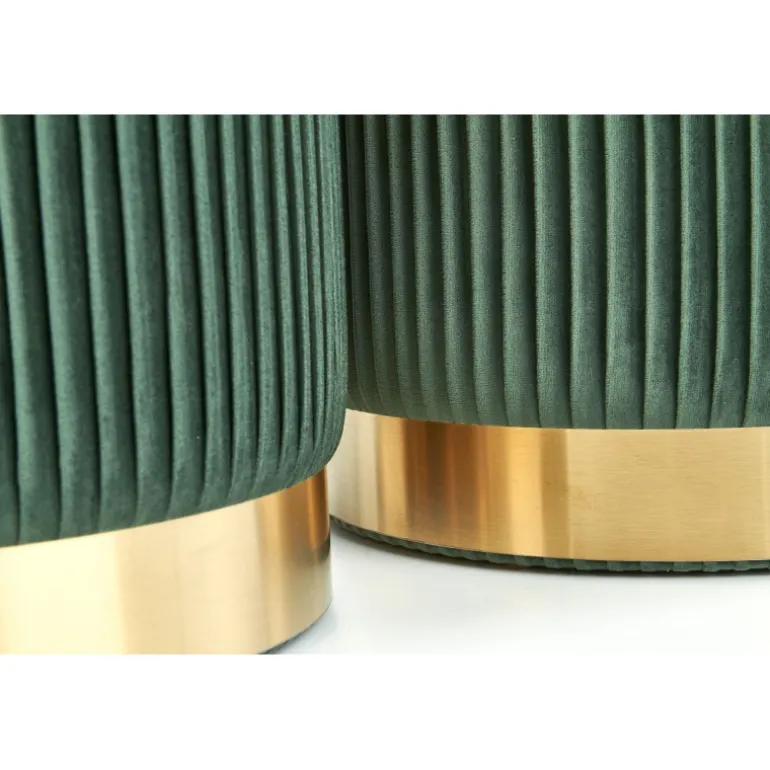 Opgrader din boligindretning med MONTY sæt af to taburetter i elegant mørkegrøn og guld. Disse taburetter er perfekte til både stue og køkken og tilbyder et stilfuldt og funktionelt design. Med dimensioner på 36/44 cm og 31/38 cm passer de nemt ind i ethvert rum. Fremstillet af holdbart stof og kromstål, sikrer de langvarig brug og komfort.