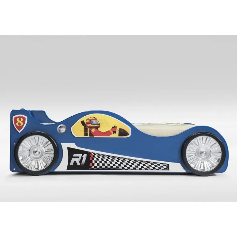 Vælg mellem fire farver og lad dit barn få sin helt egen personlige racerseng med lys og karakter – perfekt til både drenge og piger med fart og fantasi i blodet!