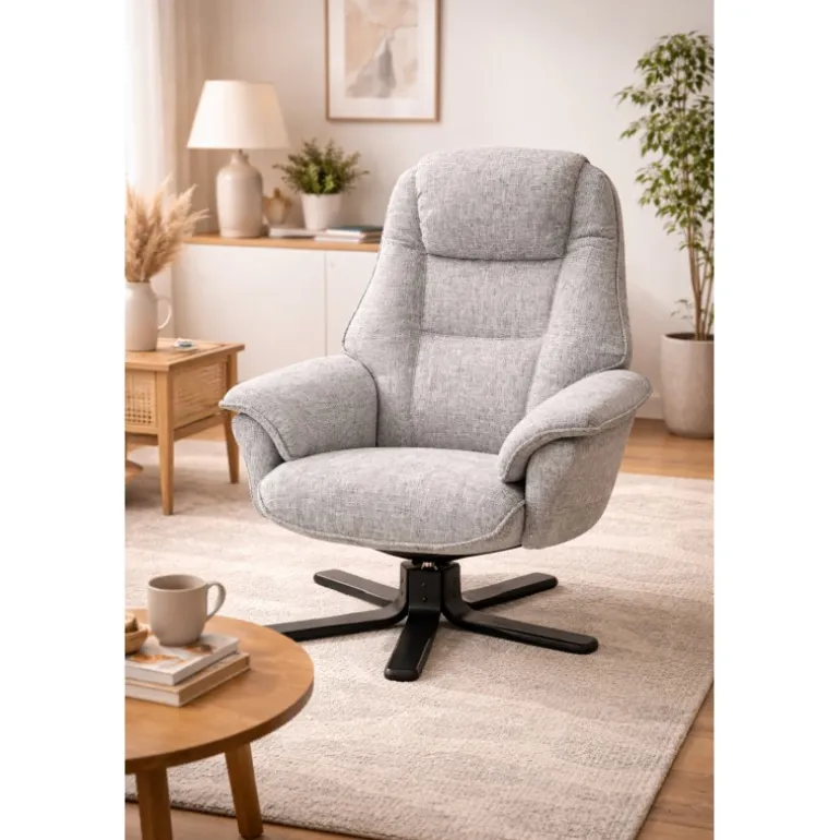 Drejestol med dejlig komfort. Ryggen kan lænes tilbage, så man opnår forskellige siddepositioner til gavn for ryggen og bekvemmeligheden.