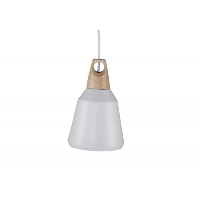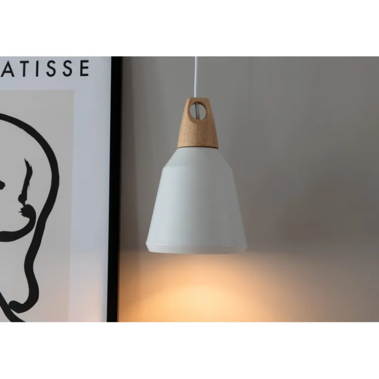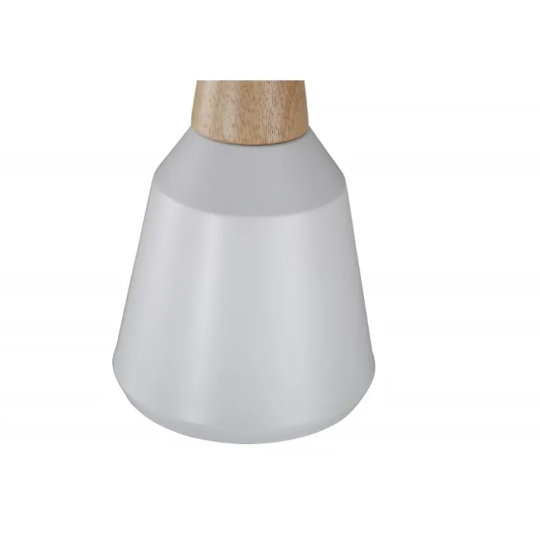 - Stilfuldt design: Afrundet lampeskærm i hvid med valnøddefarvet top.
