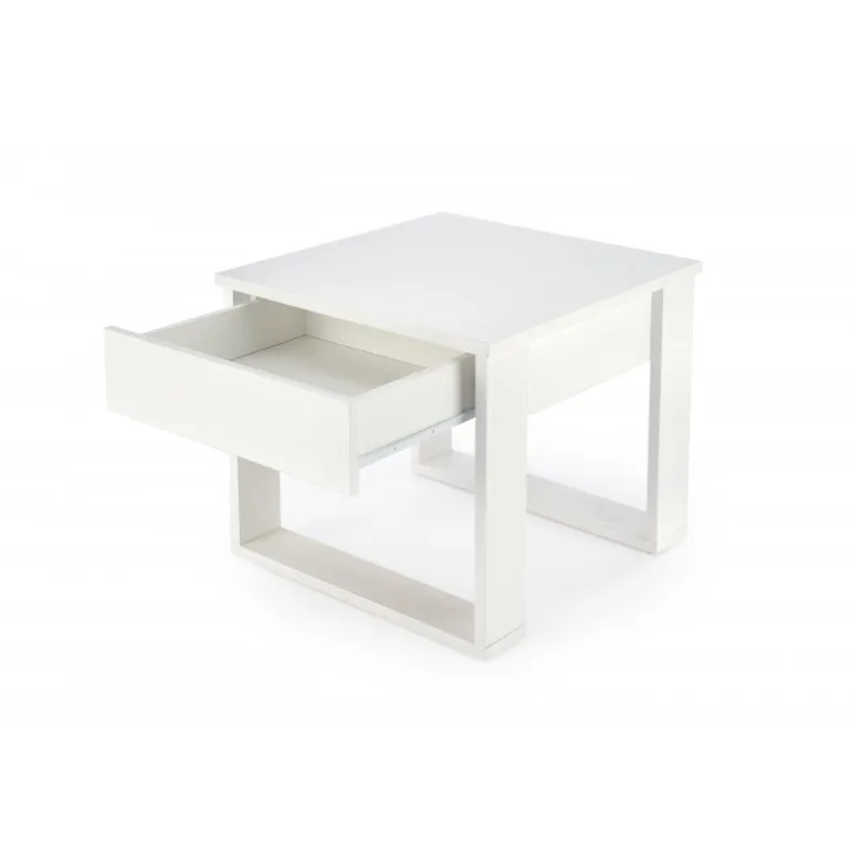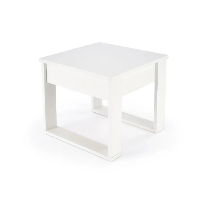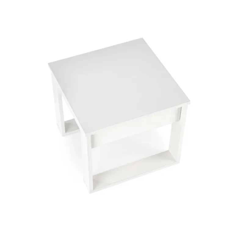 Oplev det moderne og stilfulde NEA SQUARE sofabord i hvid. Dette sofabord er perfekt til enhver stue med dets slanke design og praktiske funktioner. Med dimensionerne 60/60/52 cm passer det ideelt ind i både små og store rum. Bordet er fremstillet af lamineret spånplade, hvilket sikrer holdbarhed og lang levetid. Den hvide farve tilføjer et friskt og rent udseende til dit hjem.