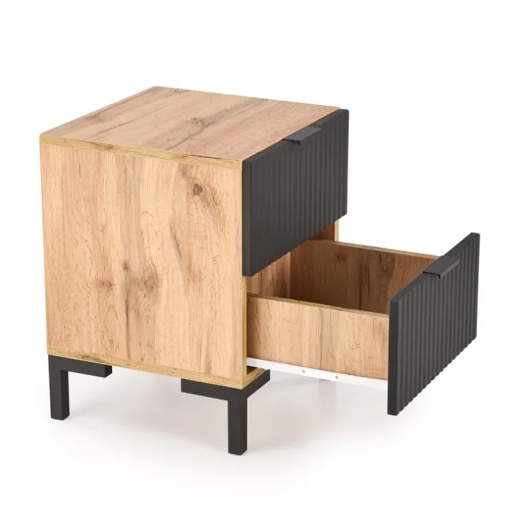 NELA sengebord i håndværk eg og Sort er den perfekte løsning til dit soveværelse. Dette stilfulde sengebord er designet med fokus på både funktionalitet og æstetik, og det passer perfekt til enhver moderne boligindretning. Med dimensionerne 40/40/52 cm tilbyder det rigelig opbevaringsplads, mens det kompakte design gør det ideelt til mindre rum. Materialerne, der er brugt i konstruktionen – lamineret spånplade, lamineret MDF og polypropylen – sikrer holdbarhed og lang levetid, hvilket gør dette møbel til en pålidelig tilføjelse til dit hjem.