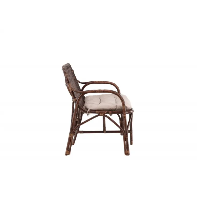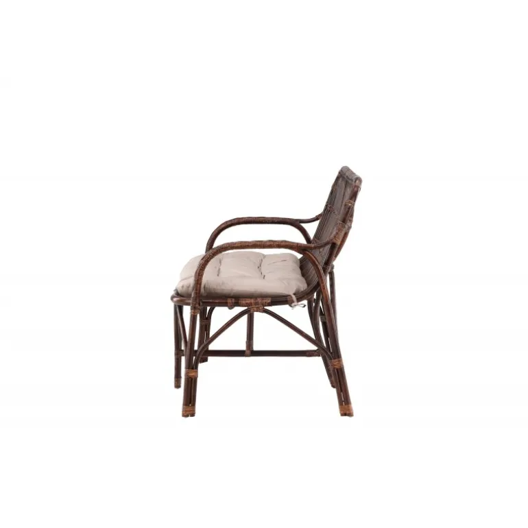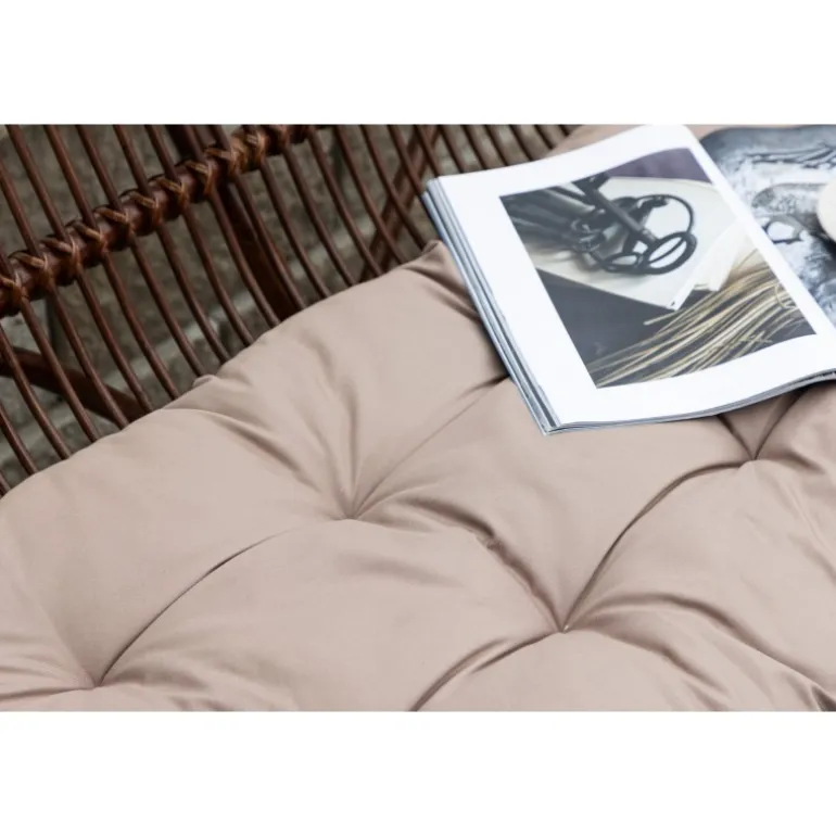 - Komfortabel og stilfuld: Bløde beige puder og elegant rattan konstruktion.