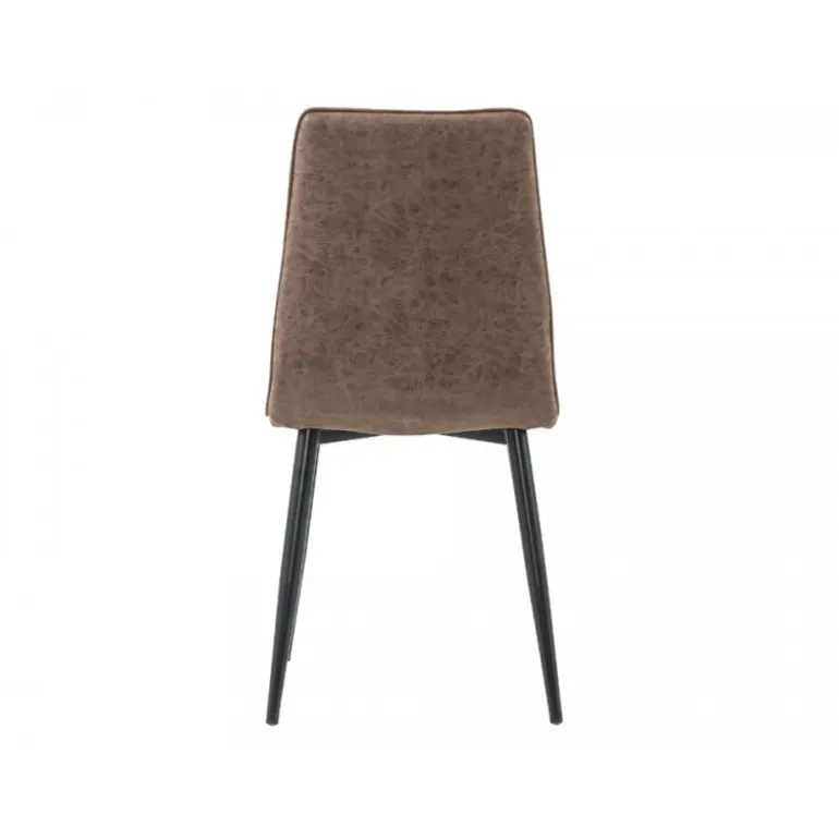 Elegant spisebordsstol i brun tekstillæder, med patinalook. Spisebordsstolen har et smukt og iøjnefaldende design, der kombinerer retrolook med moderne formsprog. Med denne stol får her en utraditionel og unik spisebordsstol, uden at gå på kompromis med komfort og funktionalitet.