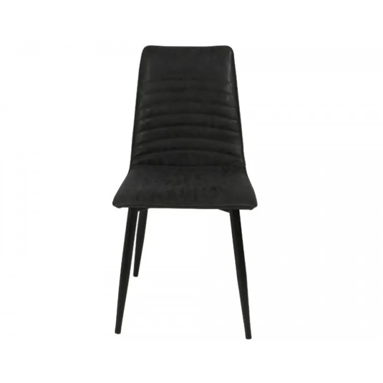 Elegant spisebordsstol i sort tekstillæder, med patina look. Spisebordsstolen har et smukt og iøjnefaldende design, der kombinerer retrolook med moderne formsprog. Du får her en utraditionel og unik spisebordsstol uden at gå på kompromis med komfort eller funktionalitet