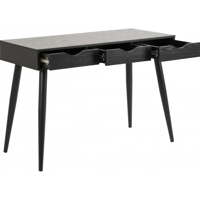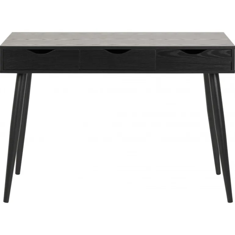 Neptun skrivebord melamin ask sort, skuffer 3 stk, sort, stel metal pulverlakeret, mat sort L:110 B:50 H:77,1 cm