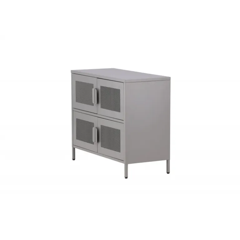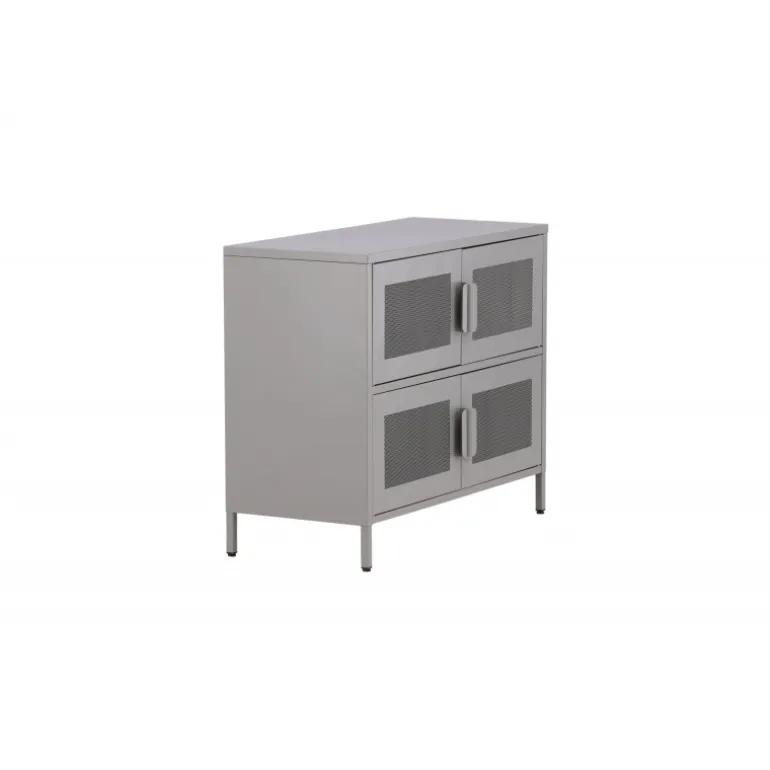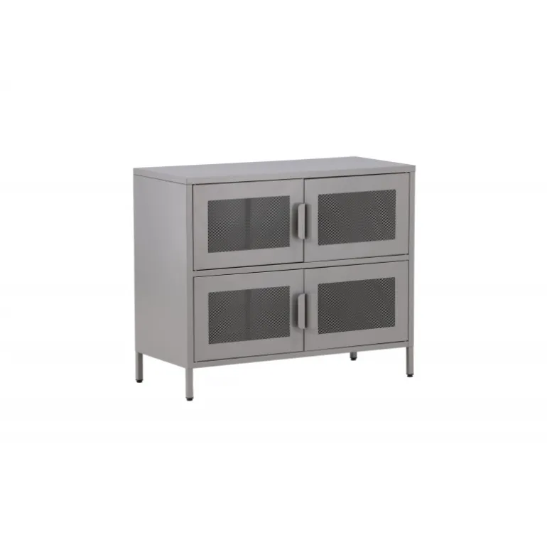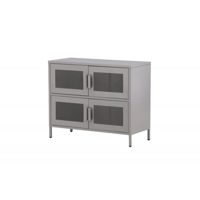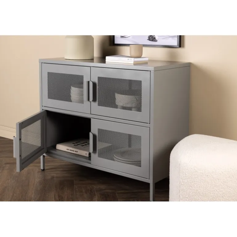 Indret hjemmet smart og pænt med et praktisk opbevaringskabinet fra serien Nett i lækkert industrielt design! Dette kabinet er lavet af gråt stål med netlåger, der bliver en smagfuld detalje for øjet. Kabinettet har to hylder med fire rum, som skaber masser af plads til halvskjult opbevaring. Kabinettets dybde giver et robust indtryk og er ideel til aflastning, selv på den øverste plade – pynt med dekorationer og skab et blikfang, der imponerer! De smalle, høje ben, der løfter kabinettet, skaber en luftig følelse og letter også støvsugningen. Nyd et smart møbel!