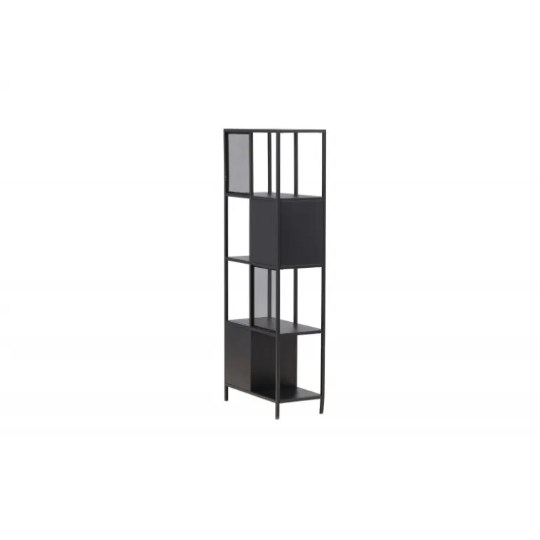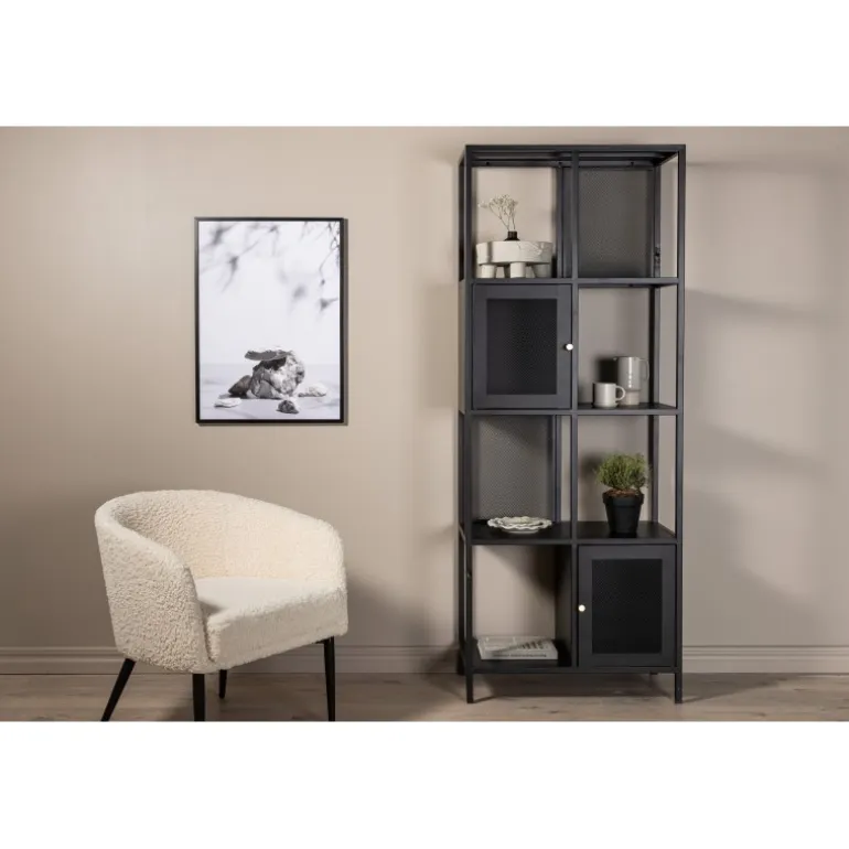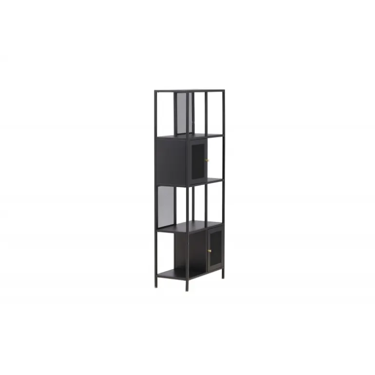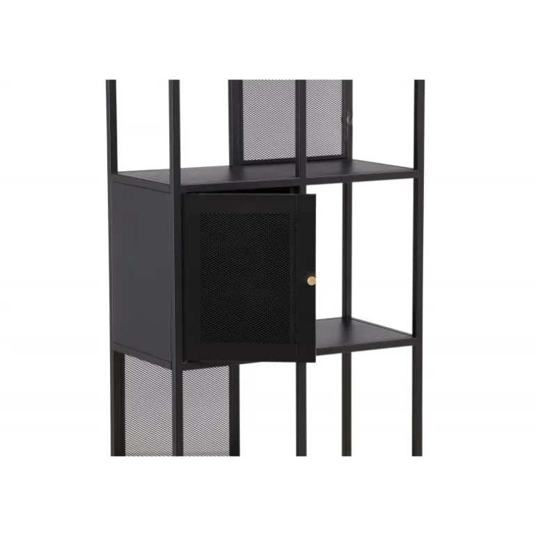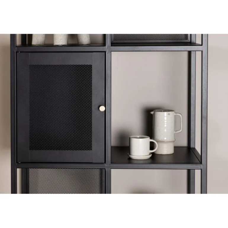 Dekorer dit hjem både smart og stilfuldt med vores populære skab fra serien Netz! Netz er den perfekte hylde i et højt og smalt design, der muliggør både åben og skjult opbevaring på sine fire hylder. Der er to rum med netdøre og messingfarvede knopper – fremragende til alt, der skal opbevares skjult. Andre hylder er åbne og perfekte til opbevaring af porcelæn eller smukke dekorationer, der skaber den perfekte hjemlige følelse. Se vores billeder for inspiration!