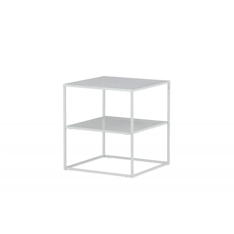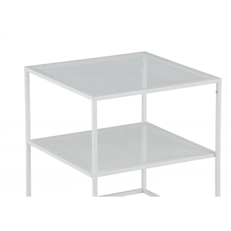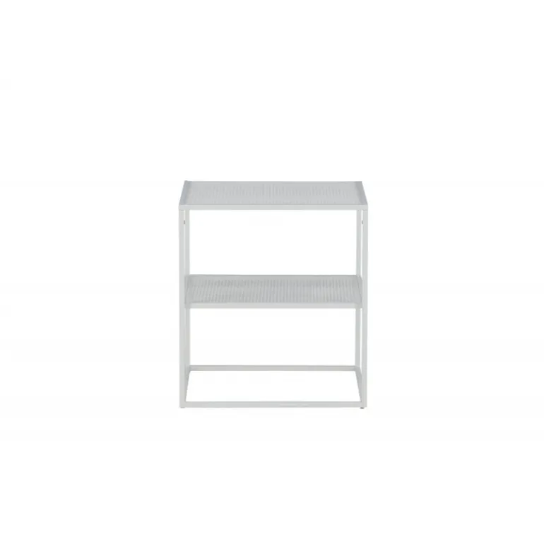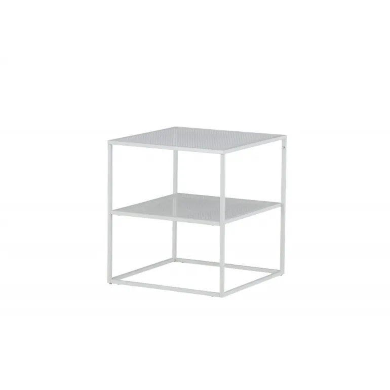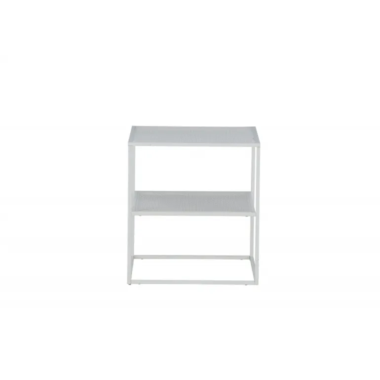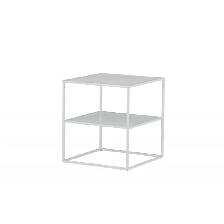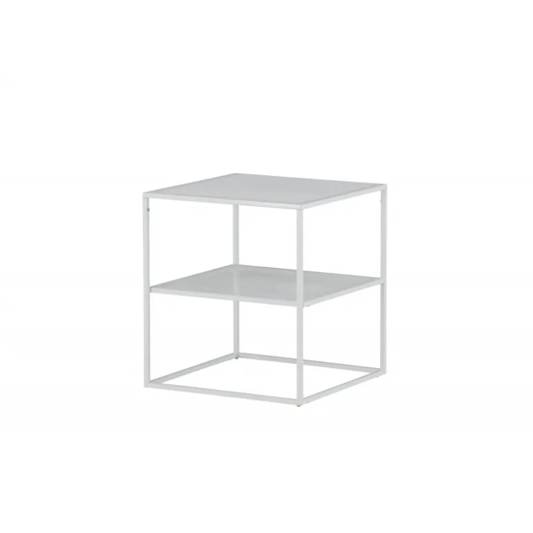 Dette sofabord klatrer på trendlisterne! Netz er et moderne og praktisk sofabord i hvidt stål med et industrielt udtryk og lige design. Med sine stilfulde former tilføjer bordet en moderne og luftig fornemmelse til rummet og er utroligt anvendeligt som aflastningsbord, piedestal eller sidebord. Den kvadratiske og pæne størrelse gør bordet nemt at placere og flytte rundt i hjemmet. Der er også en smart gitterhylde, som fungerer godt til lettere opbevaring eller dekorationer. Perfekt til dem, der søger et flot aflastningsbord eller en pæn interiørdekoration!