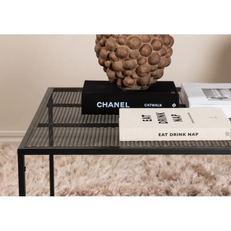 Giv stuen et løft med et slankt sofabord fra Netz-serien i sort stål. Det gennemtænkte minimalistiske design med lige nordiske former skaber en luftig og moderne følelse i rummet. Bordet er lige så pænt som praktisk med en smart hylde i gitter til bøger, dekorationer eller lidt ekstra opbevaringsplads. Helt i tråd med trenden med stilfulde og åbne strukturer – en perfekt tilføjelse til hjemmet!