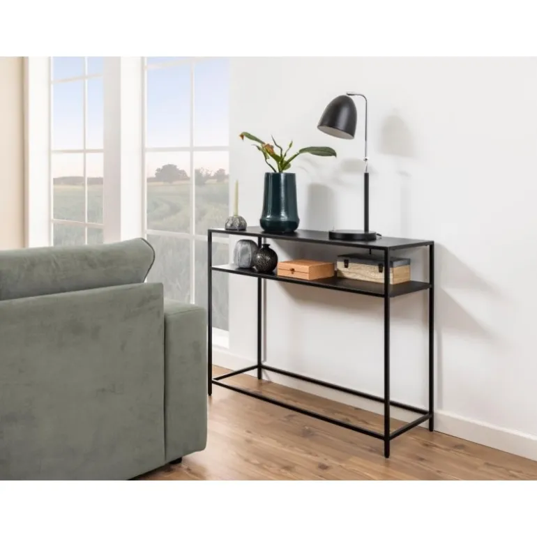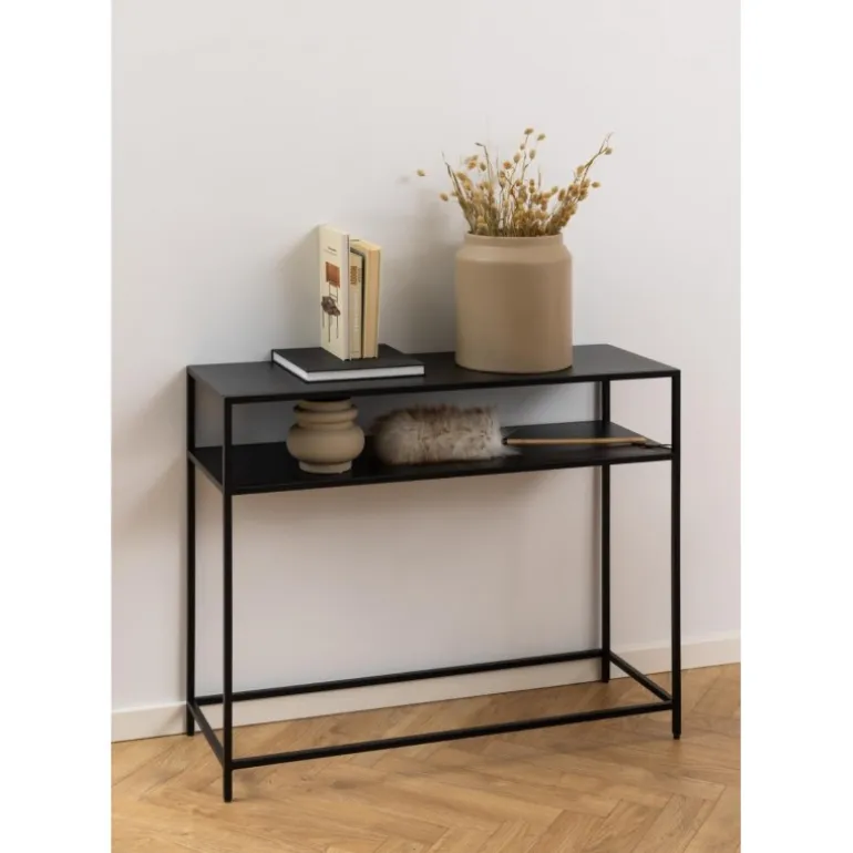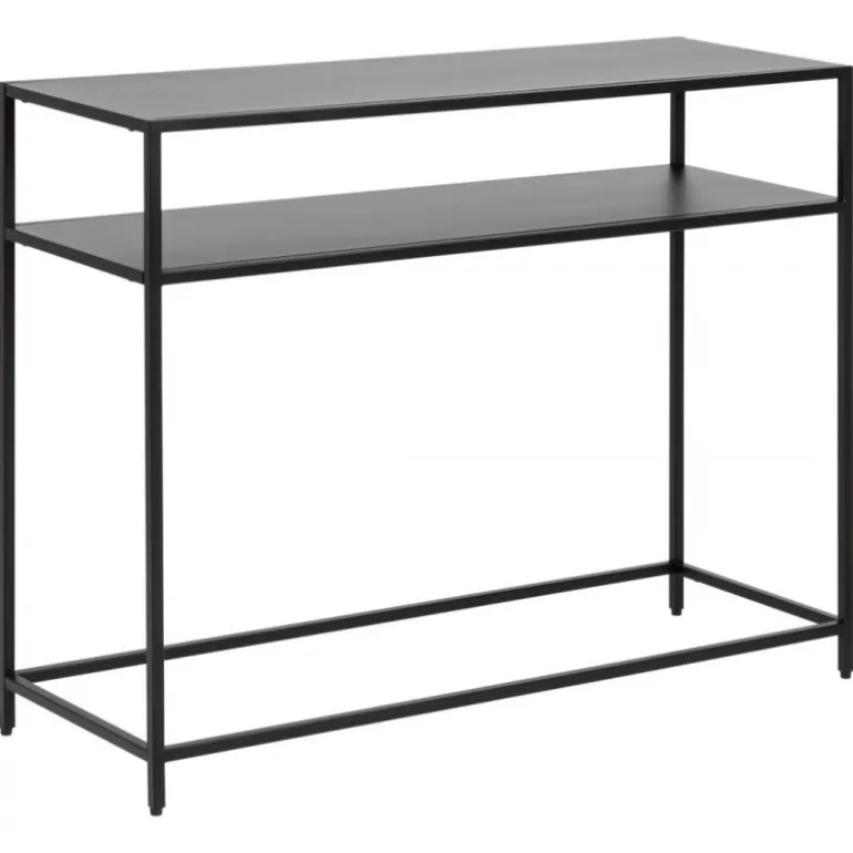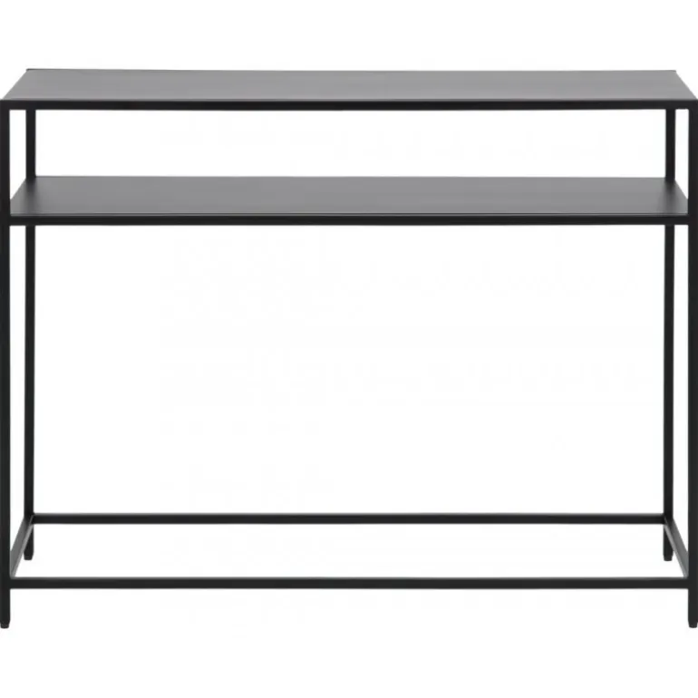 Newcastle konsolbord metal pulverlakeret ru mat sort, hylde 1 stk åben bund L:100 B:35 H:79 cm