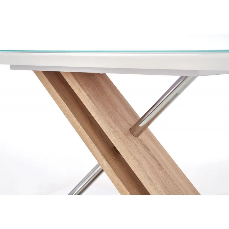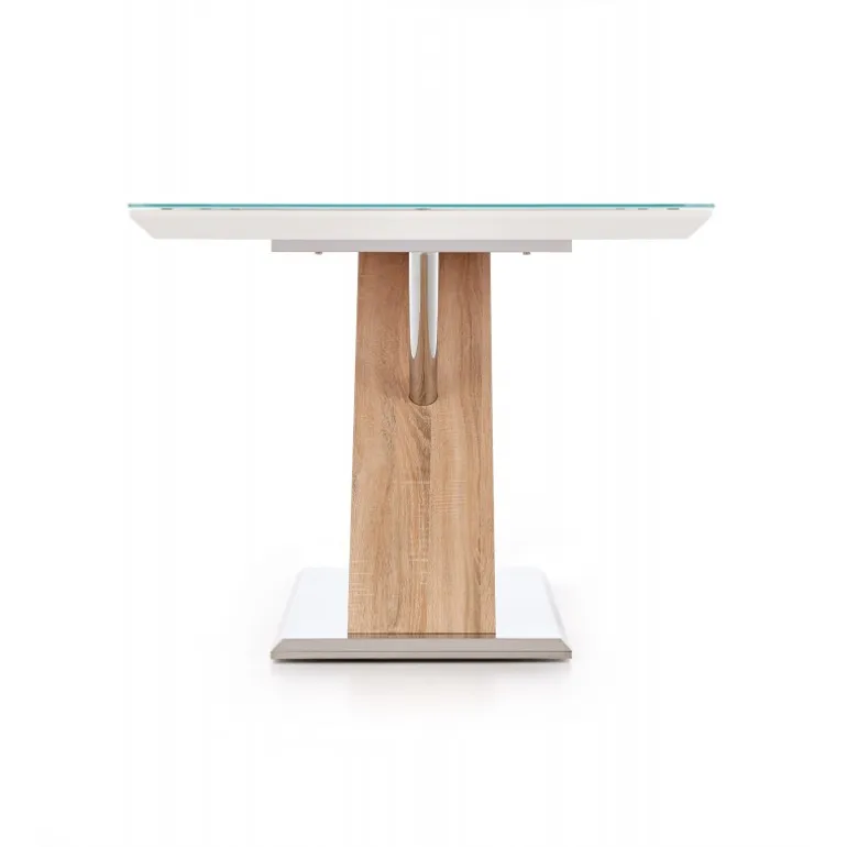 Oplev NEXUS-bordet i en elegant kombination af ekstra hvidt glas og sonoma eg. Med dimensionerne 160/90/76 cm passer dette bord perfekt ind i både moderne og klassiske indretninger. Fremstillet af glas, lakeret MDF, lamineret MDF, kromstål og rustfrit stål, sikrer NEXUS både holdbarhed og stil. Uanset om det bruges som spisebord eller arbejdsbord, giver det et tidløst udseende og funktionalitet til dit rum.