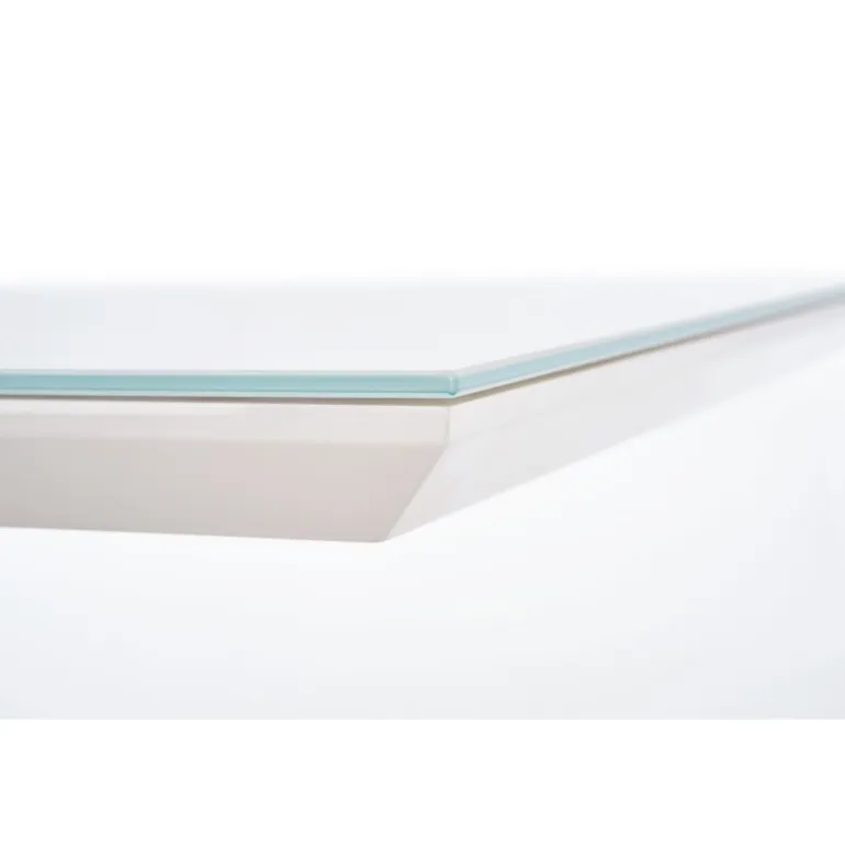 - Holdbart materiale: Lavet af glas, lakeret MDF, lamineret MDF, kromstål og rustfrit stål.