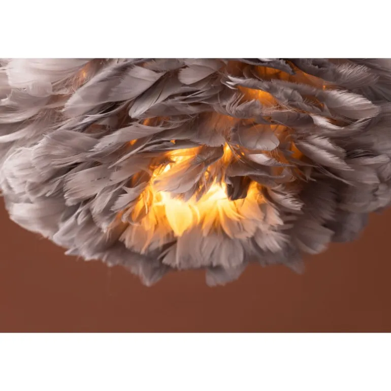 Nicola er en stilfuld og elegant loftslampe, der er perfekt til at skabe en blødere stemning i hjemmet. Lampen har grå kunstige fjer, der bliver en smuk indretningsdetalje og giver et behageligt lys, som skaber en varm og hyggelig følelse i rummet. Placer lampen i soveværelset eller stuen, og du vil helt sikkert få en dejlig blikfang! Nicola fås i flere størrelser.