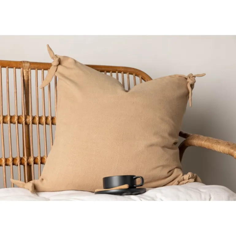 Nora pudebetræk passer perfekt til både sofaen og soveværelset! Nora-serien tilbyder kvalitets-pudebetræk i forskellige størrelser og farver – alt for at matche dine ønsker og din indretningsstil. Dette pudebetræk er både stilfuldt og funktionelt i viskose-linned med dekorative snørebånd i hvert hjørne. Her præsenteres det i en kamel-brun nuance, der bryder øjets opmærksomhed i det moderne hjem.