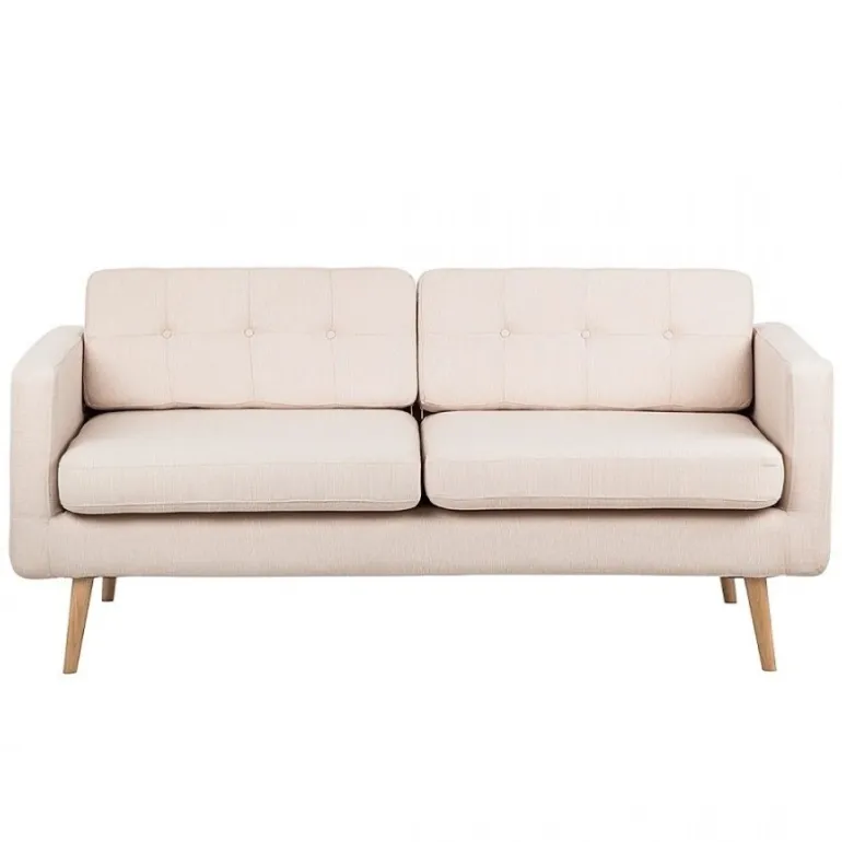 Novelty 3+2 pers.sofasæt designet med inspiration fra 1970´erne. Det klassiske snit kombineret med nutidens moderne, rene linier gør Novelty til en sofa, der går godt i spænd med nutidens boligtendenser. Sofaernes velpolstrede hynder er betrukket med slidstærkt beige stof og benene er lavet af massivt egetræ. Giv dit hjem et stilfuldt look med dette flotte sofasæt.