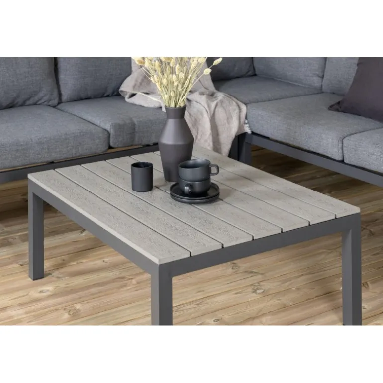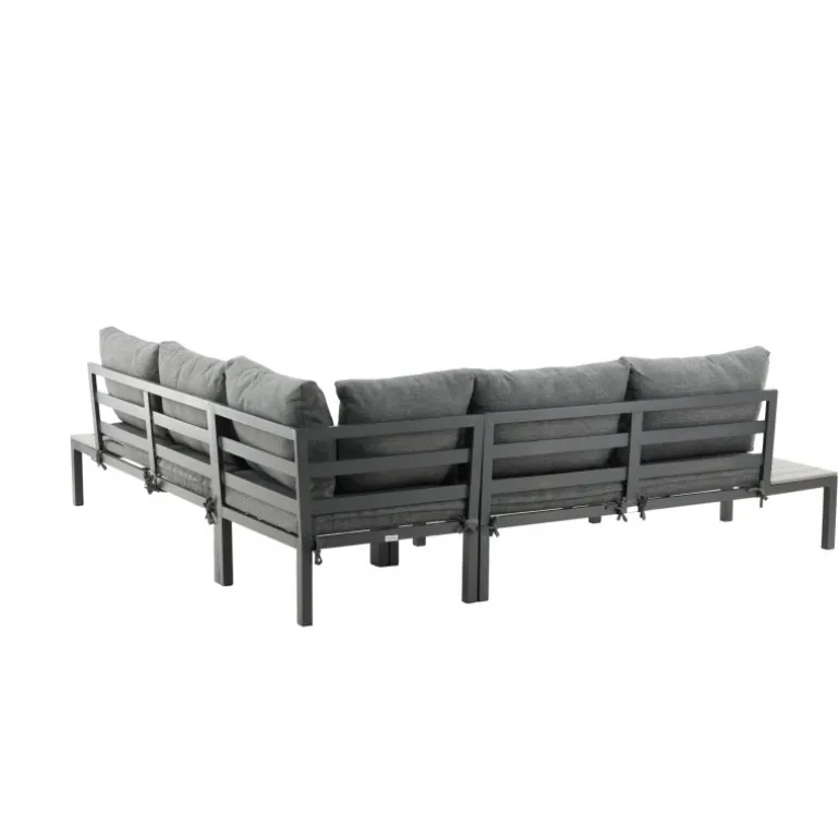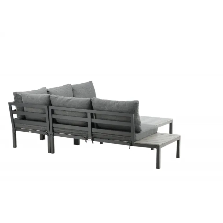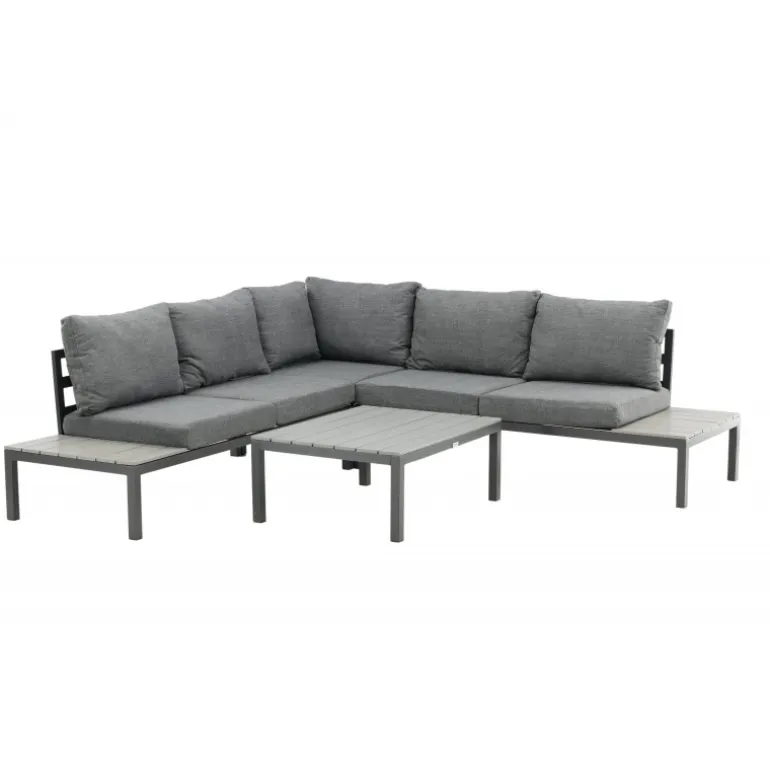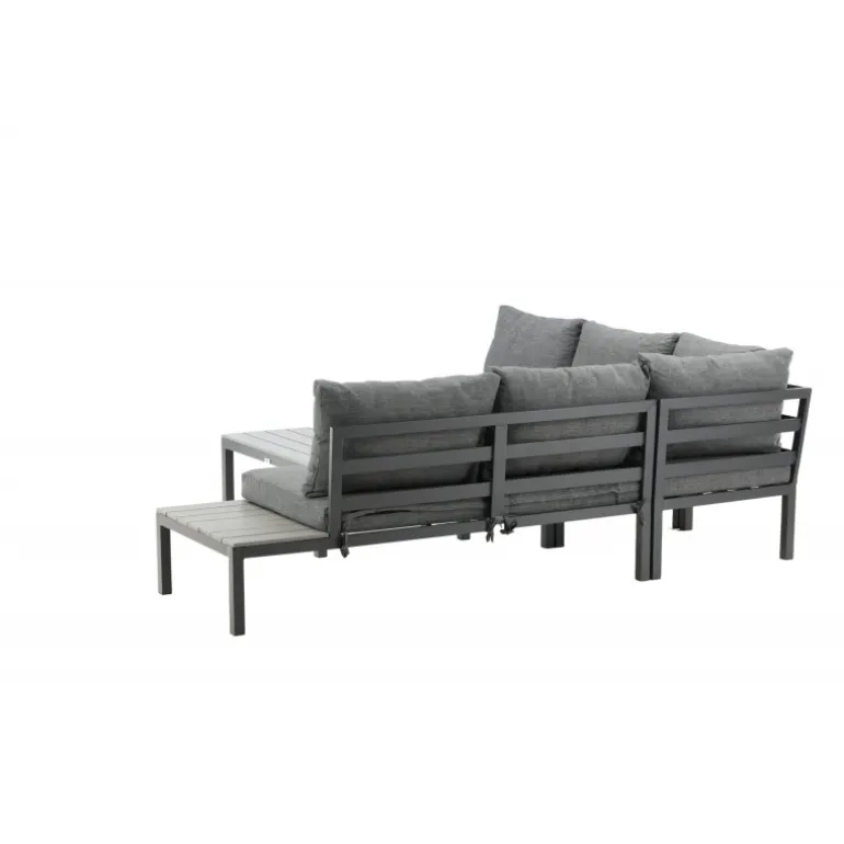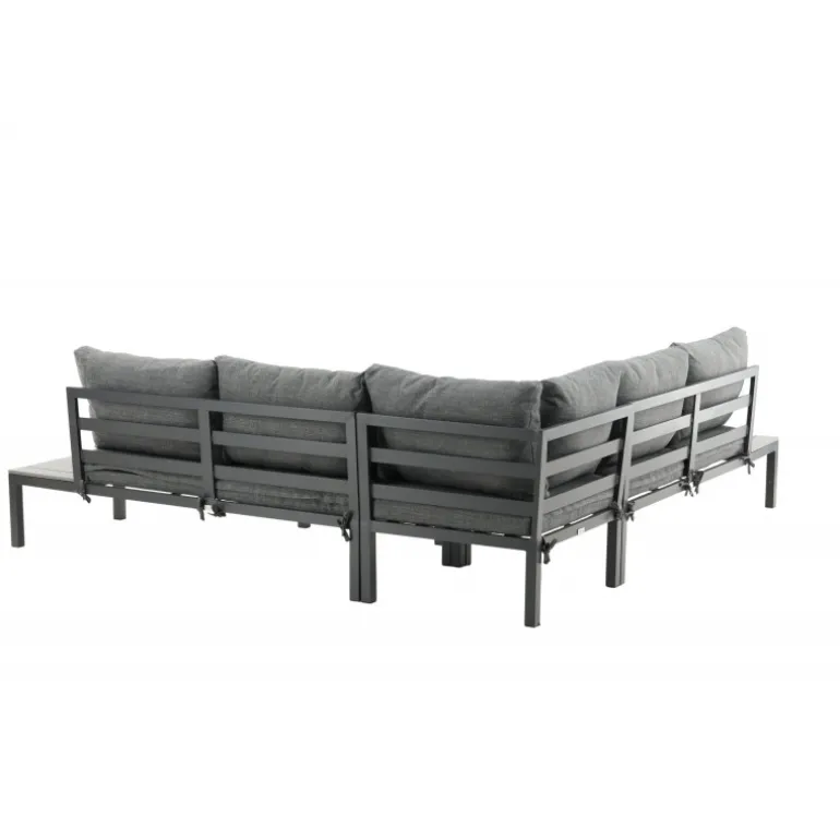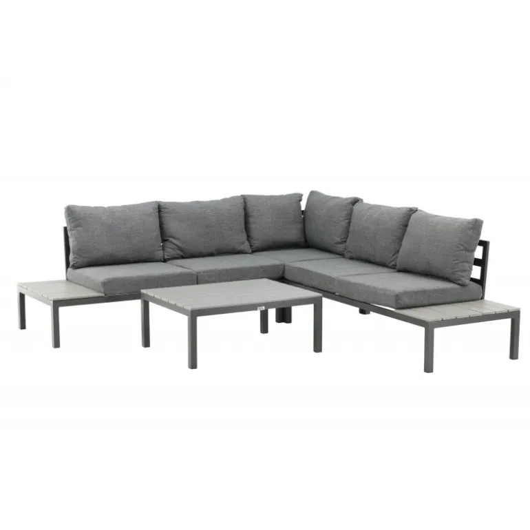 Stilfuld, smart og holdbar – den perfekte sofasæt til terrassen denne sommer! Odense er en klassisk og enkel hjørnegruppesæt i lækkert loungedesign med en sort ramme i aluminium og grå topplade i polywood. På hver side af sofaen er der små “sideborde”, perfekte til ekstra afsætningsplads. Sofasættet er velegnet til udendørs brug og passer lige så godt i haven som i hjørnet af balkonen. Grå puder medfølger, som gør gruppen både stilfuld og komfortabel! Plejeanvisning: Udendørsmøbler i aluminium og rustfrit stål skal rengøres regelmæssigt med vand og mild sæbe. Skyl altid grundigt med rigeligt vand, hvilket bliver ekstra vigtigt, hvis møblerne er placeret i nærheden af havet, hvor salt kan transporteres gennem luften.