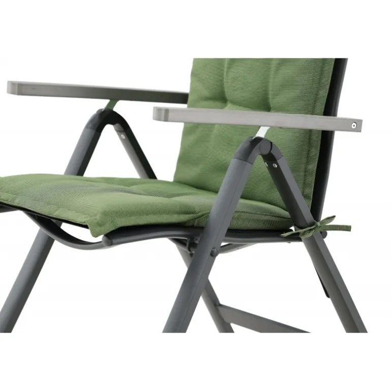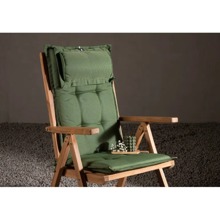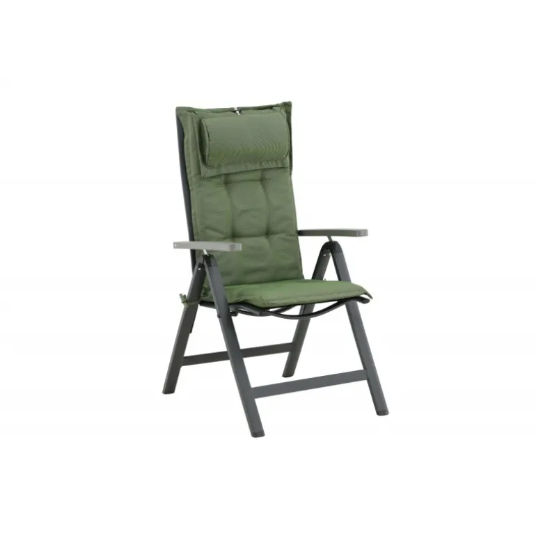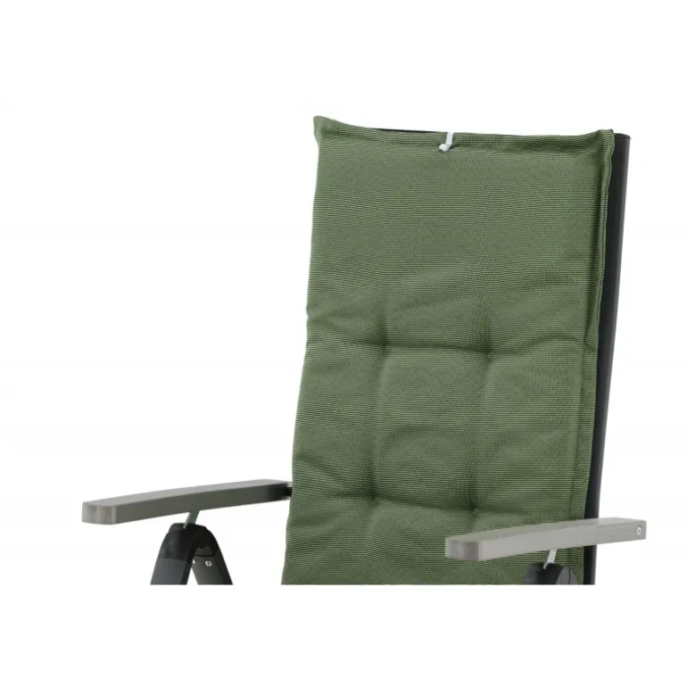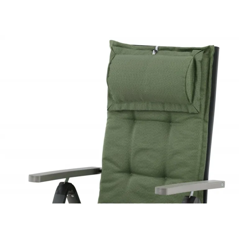 Skab en sommerlig og indbydende stemning med stilfulde puder til dine stole! Denne linnedlignende 5-position pude i olivengrøn med nakkepude er både stilfuld og behagelig. Bagpå er der stropper, der holder puden på plads. Sæt dig tilbage og nyd komforten i mange timer!