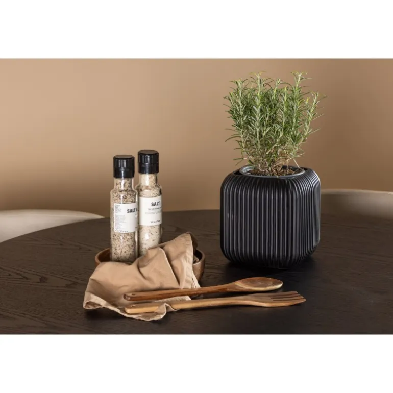 - Rundt spisebord Olivia: Holistisk design i sort MDF med finérbelagt bordplade.