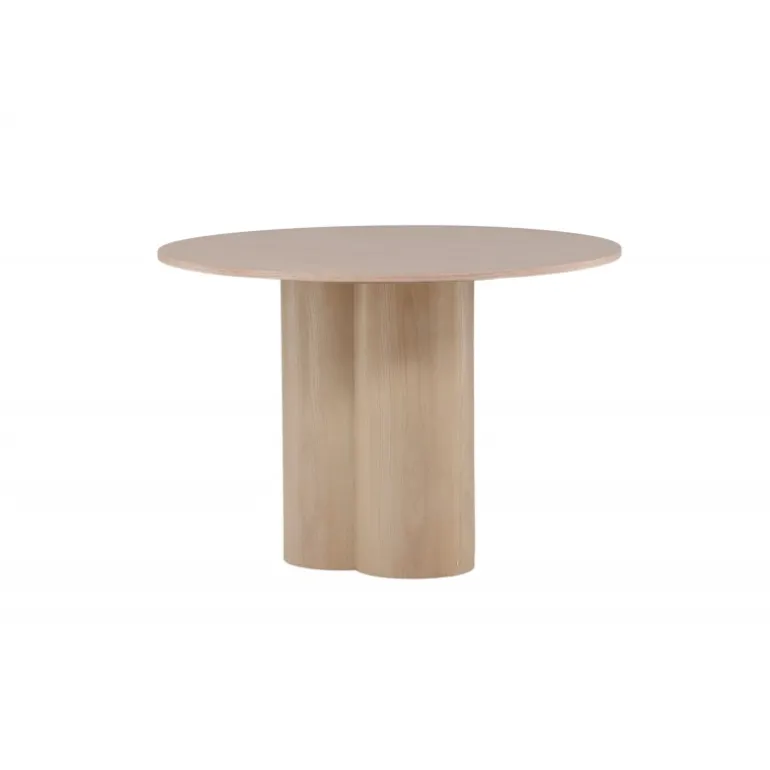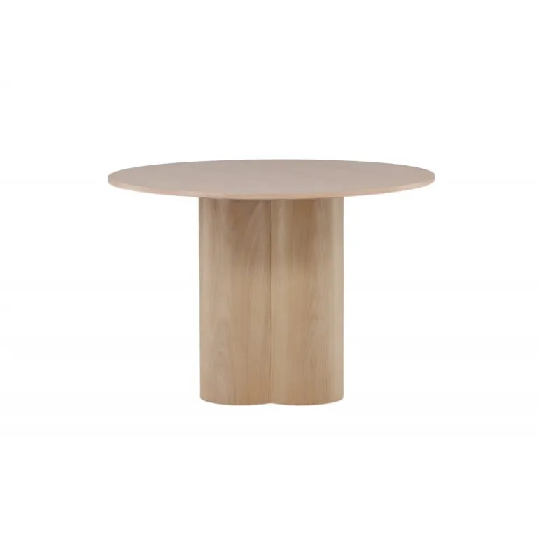 Olivia spisebord imponerer med sit skandinaviske design og smagfulde udseende! Rundt spisebordet har et ensartet design i hvidmalet MDF med en tynd, rund bordplade og tre cylindriske ben, der samles under midten af bordet. Farven har en let dækning på den finérbelagte plade, hvilket gør materialet synligt og giver liv og bevægelse til bordet. Skab en stilfuld blikfanger i hjertet af hjemmet – her ender ingen på kanten!
