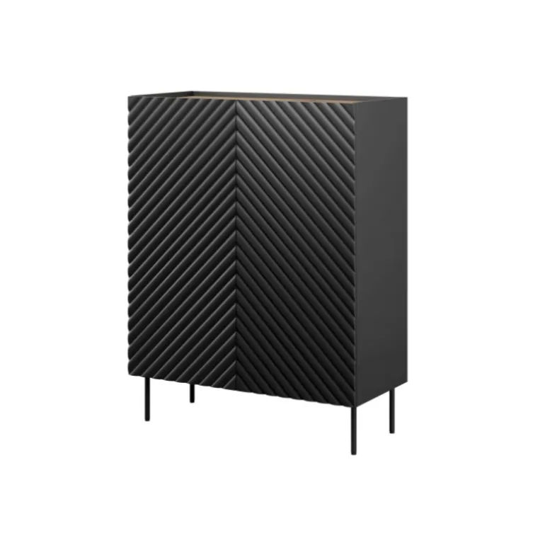 ONDA skab 2D2SZ er designet til at bringe både stil og funktionalitet til dit hjem. Med dimensionerne 127 cm i højden, 98 cm i bredden og 45 cm i dybden tilbyder dette skab rigelig opbevaringsplads uden at optage for meget gulvplads. Kroppen er lavet af 16 mm lamineret spånplade, mens frontene er fremstillet af 18 mm fræset MDF og belagt med PVC-folie for ekstra holdbarhed. Den øverste kant er også lavet af 16 mm lamineret spånplade, og bagsiden består af 3 mm MDF-spånplade. Skabet har blødlukkende hængsler for en lydløs og glat lukning. De 20 cm høje stålben giver stabilitet uden justeringsmuligheder, og håndtaget er diskret indbygget i fronten, der stikker ud over den øverste kant.