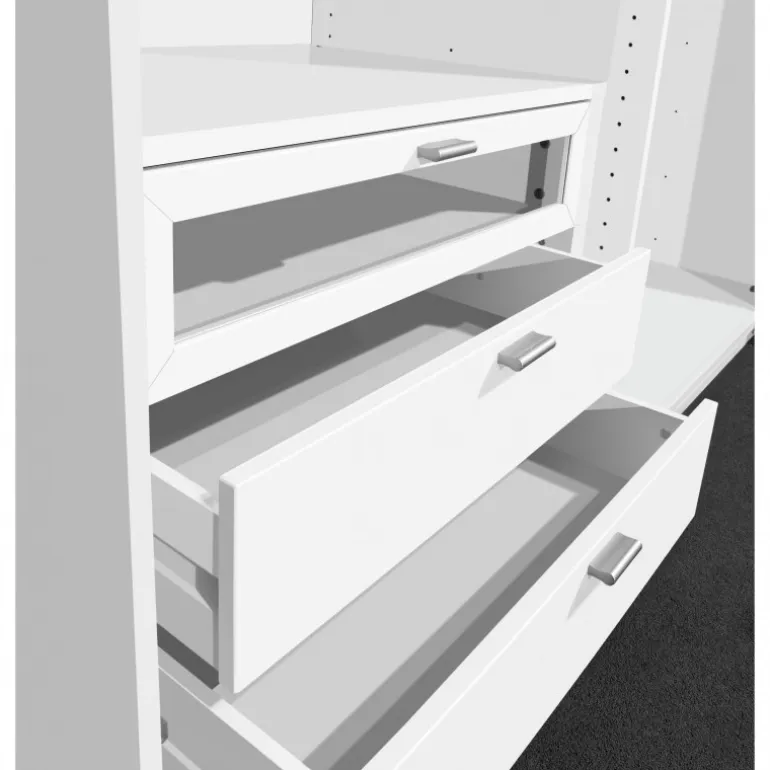 Optima indsatsskuffe til klædeskabe med sektionsbredde på 98 cm. Skuffen er udført i hvid melamin med metalgreb og kan kombineres med dækhylde, som bruges som topplade.