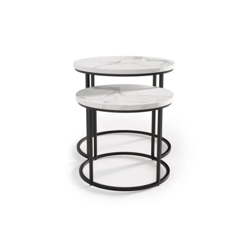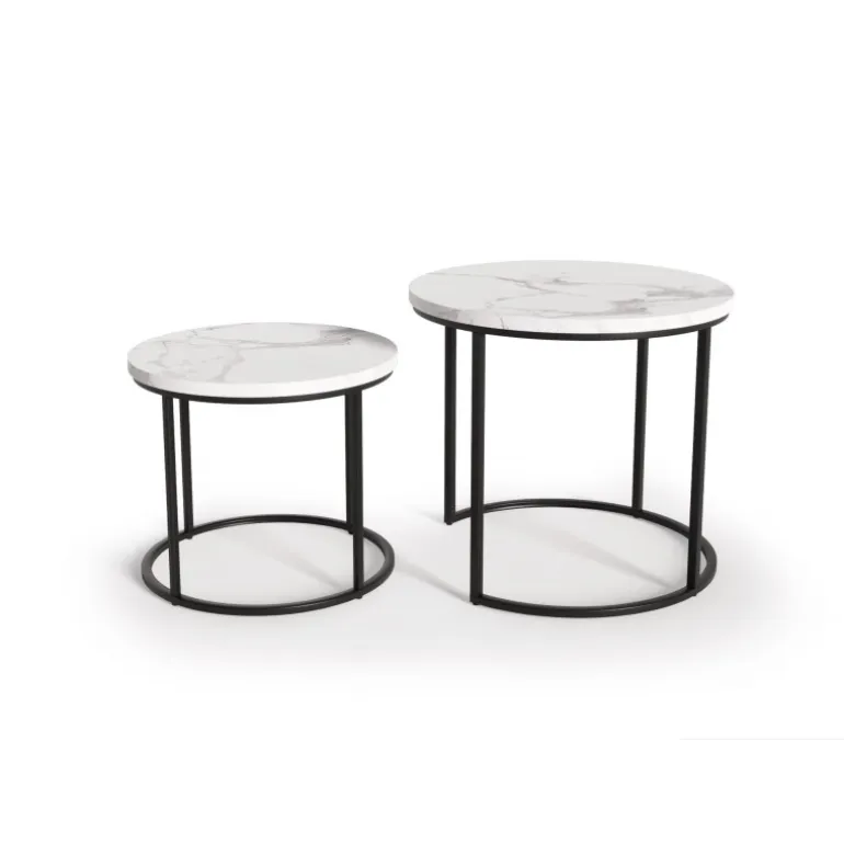 Oplev elegance og funktionalitet med OREO Sæt af To Sofaborde i hvid marmor og Sort. Disse borde er designet til at tilføje et stilfuldt touch til dit hjem. OREO sofabordene er fremstillet af lamineret MDF og pulverlakeret stål, hvilket sikrer holdbarhed og langvarig brug. Med deres moderne design og tidløse farvekombination passer de perfekt ind i enhver indretning. De to borde kommer i forskellige størrelser, hvilket giver dig fleksibilitet til at arrangere dem efter behov.