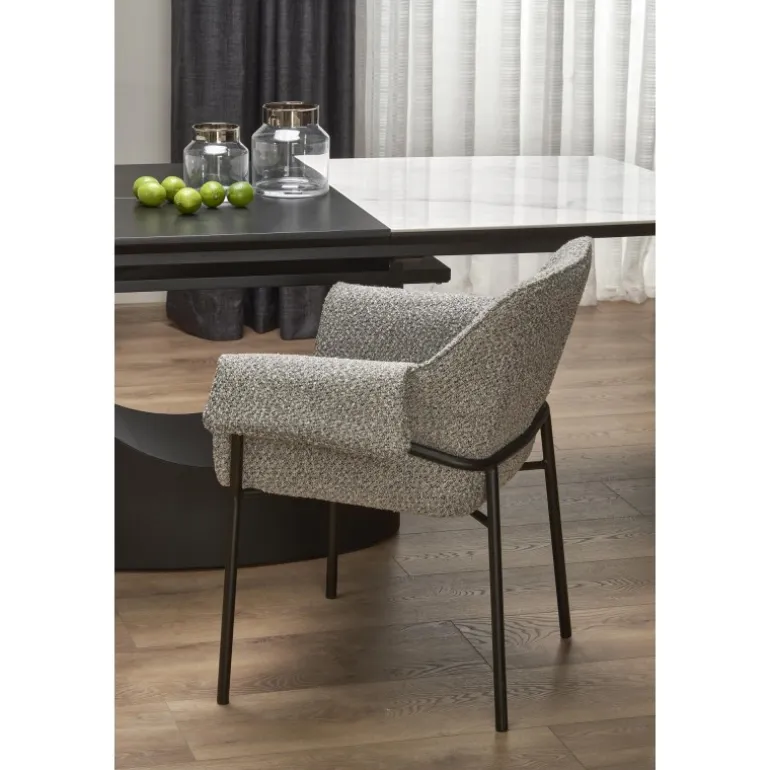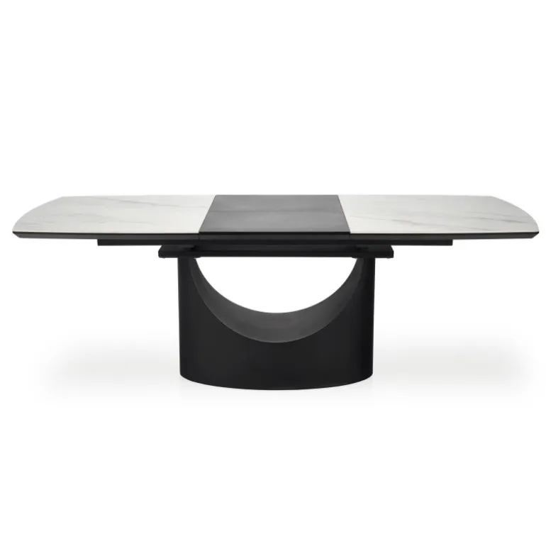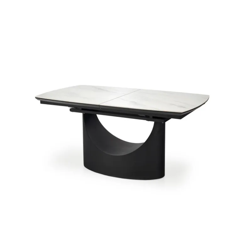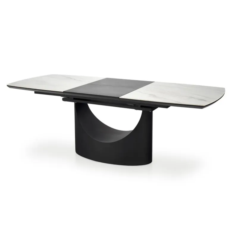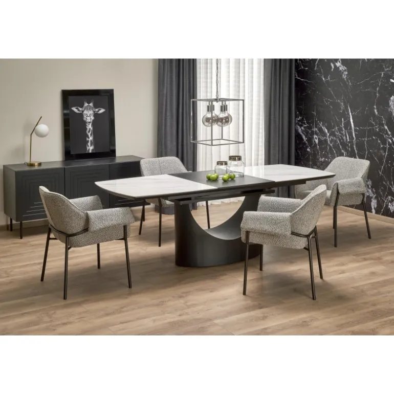 Oplev OSMAN Spisebord med udtræk, det perfekte valg til enhver moderne spisestue eller køkken. Med et elegant hvidt marmorbord og robuste Sorte ben, kombineres stil og funktionalitet. Dette bord kan forlænges fra 160 cm til 220 cm, hvilket gør det ideelt til både hverdagsbrug og særlige lejligheder. Fremstillet af holdbare materialer som keramik, lakeret MDF og pulverlakeret stål, sikrer dette bord langvarig kvalitet og stabilitet.