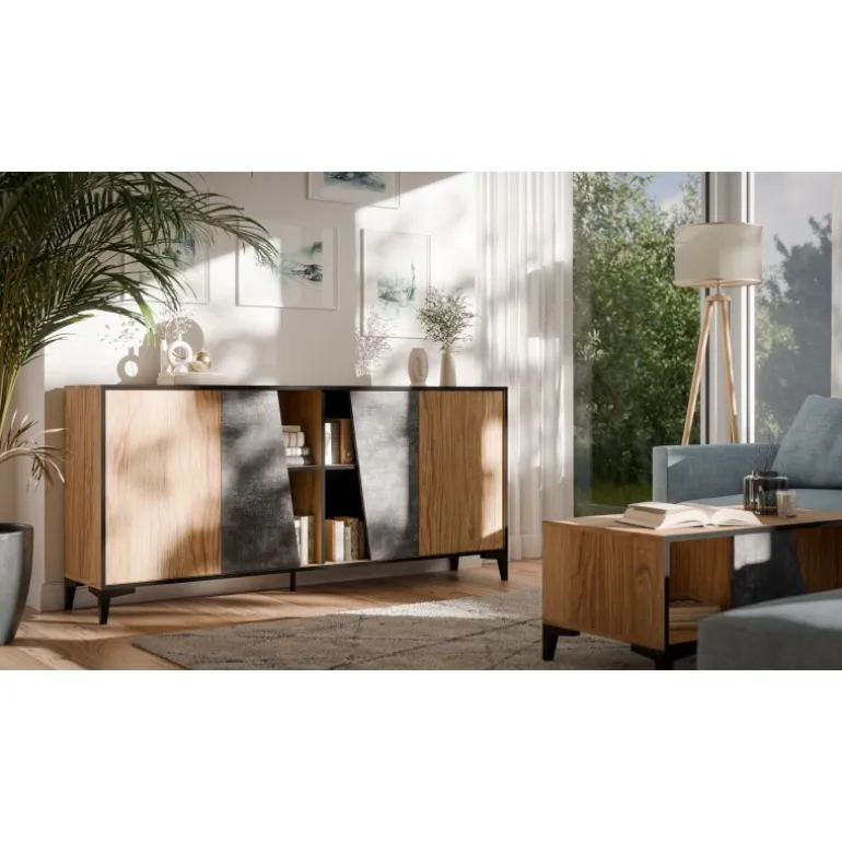 Giv dit hjem et moderne touch med vores OVO kommode i mørk beton og ur-eg. Denne stilfulde kommode kombinerer robusthed med elegance og er perfekt til enhver stue eller soveværelse. Med dimensionerne 83cm høj, 180cm bred og 38cm dyb tilbyder den masser af opbevaringsplads uden at kompromittere på designet. Fremstillet af lamineret mat spånplade sikrer denne kommode holdbarhed og langvarig brug. De plastikben på 120mm og de praktiske push to open håndtag gør denne kommode både funktionel og æstetisk tiltalende. Køb nu og oplev forskellen!