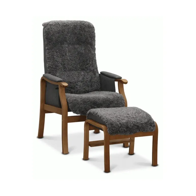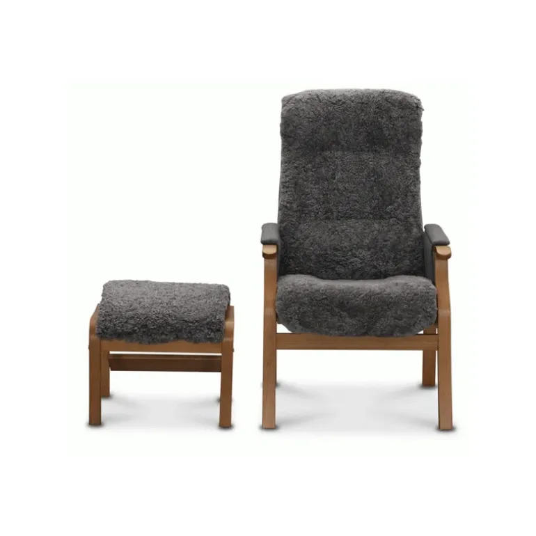Oxford Otium lænestol med skammel i grafit fåreskind