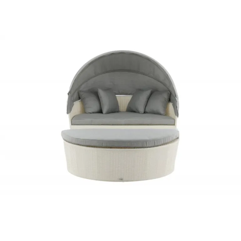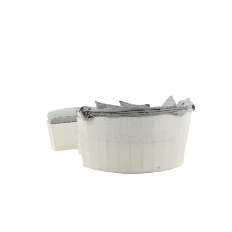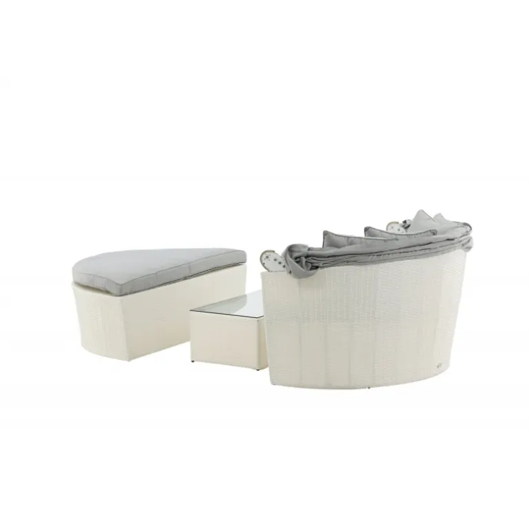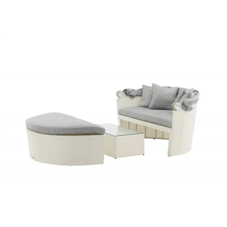 - Hvid kunstig rattan: Holdbart og vejrbestandigt materiale.