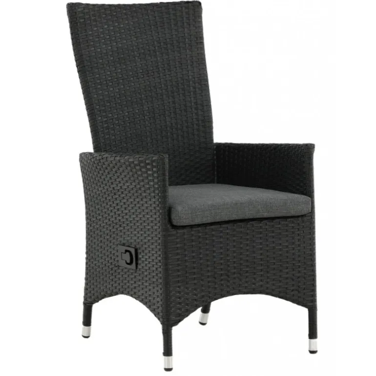Sid komfortabelt denne sommer i en moderne spisestol med foldbar ryg for optimal komfort! Padova kommer i en smuk sort farve, der er både tidløs og stilfuld. Stellet er i aluminium, og stolen er i sort kunstig rattan. Indret terrassen med en komfortabel og robust stol, der holder over tid. Vedligeholdelsesråd: Konstrite er et plastmateriale, der er perfekt til vores skandinaviske klima. Materialet er UV-resistent og kan modstå vejr og vind. Det faktum, at det er UV-resistent, betyder, at møblerne ikke falmer, men vi anbefaler altid at opbevare møblerne under et møbelovertræk eller på anden vis tørt og køligt for at forlænge levetiden.