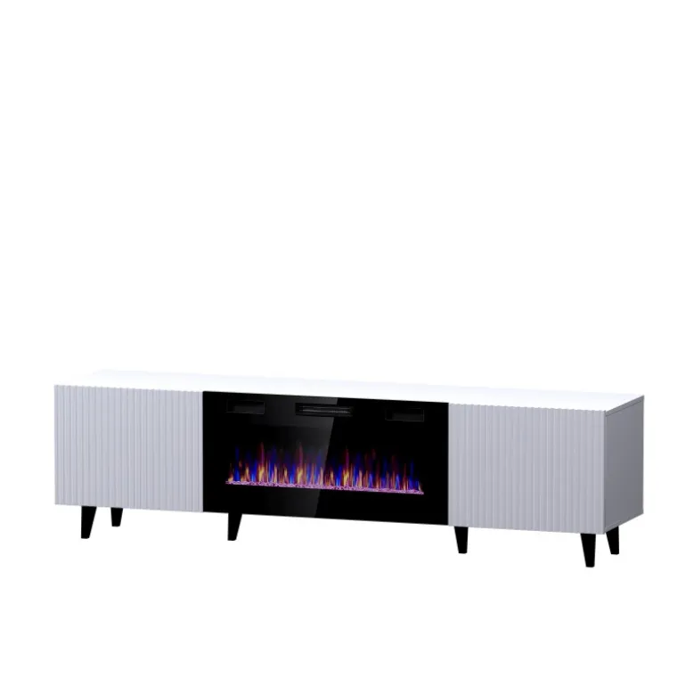 Oplev den perfekte kombination af stil og funktionalitet med PAFOS EF TV bord 180 hvid/hvid med Sorte ben. Dette elegante TV bord tilbyder mulighed for installation af en pejs, som kan bestilles separat (CAMA-KOMINEK). Det er designet med et robust korpus af lamineret mat spånplade og frontpaneler af lamineret MDF-plade beklædt med folie, hvilket sikrer langvarig holdbarhed. Med synlige skæringer og ABS-kanter er dette TV bord både praktisk og æstetisk tiltalende. De Sorte plastben tilføjer et moderne touch til ethvert rum. Giv dit hjem et løft med dette stilfulde og funktionelle møbel.