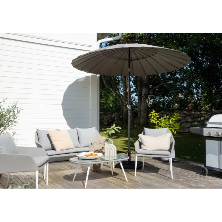 Køb din moderne Palmetto parasol i dag og nyd skyggen på terrassen!