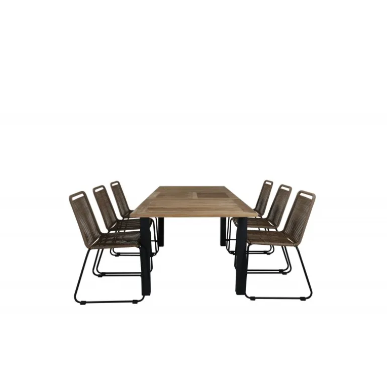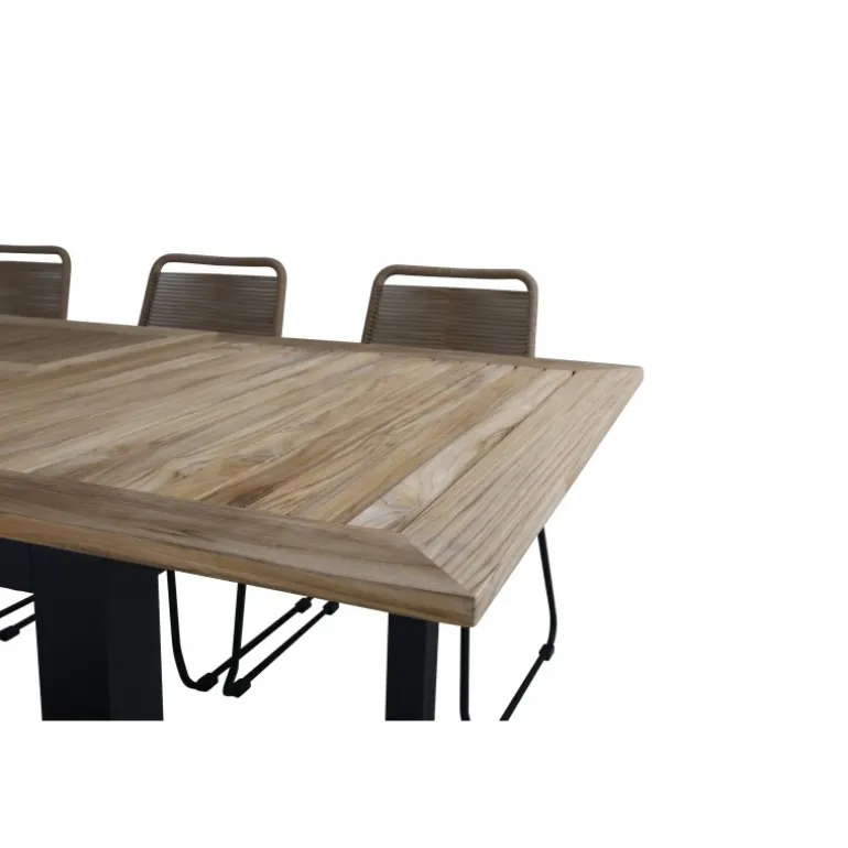 Her får både familie og venner en plads! Vores udtrækkelige og lækre træbord Panama kombineres med lattefarvede spisestole fra Lindos-serien. Indret udendørsområdet med en moderne og stilfuld Loungesæt – Havemøbelsæt i jordnære farver! Panama Rektangulær Loungesæt – Havemøbelsæt er det perfekte valg til hyggelige sammenkomster i haven eller på terrassen. Med materialer som teak og polyesterreb sikrer dette sæt både holdbarhed og æstetik.