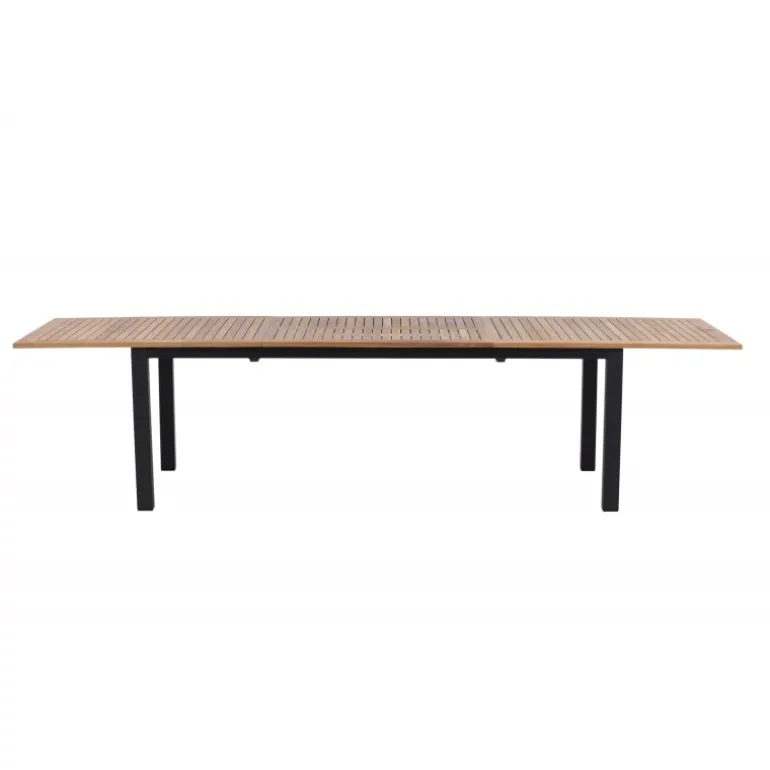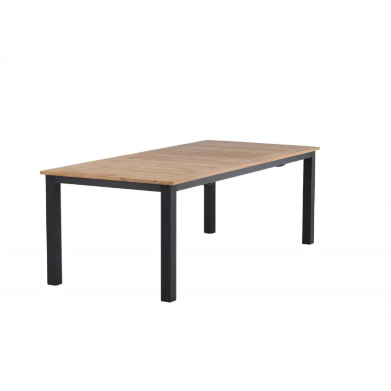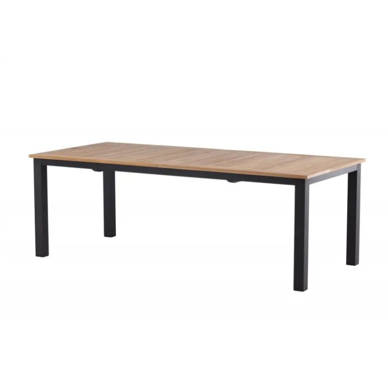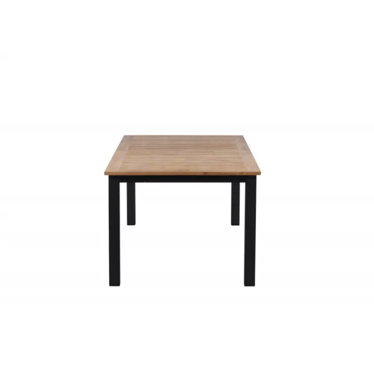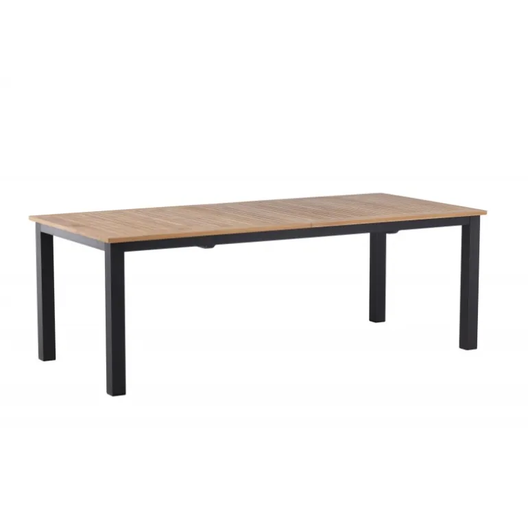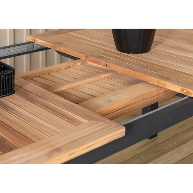 Panama, vores udtrækkelige spisebord i en rektangulær form, er perfekt til både små og store sammenkomster! Bordpladen er lavet af teak og understellet i sort metal – en lækker farvekombination, der holder gennem tiden. Saml familie og venner til dejlige middage i sommersolen og gør dig klar til nattelivet! Plejeråd: Vores teakmøbler er fremstillet af certificeret teak, der er dyrket til formålet og ikke ødelægger sarte regnskove. Som en af de mest holdbare træsorter indeholder teak meget olie, som normalt er nødvendigt, så materialet ikke revner. Fordi denne trætype naturligt indeholder meget olie, behøver møblerne ikke blive imprægneret så ofte.