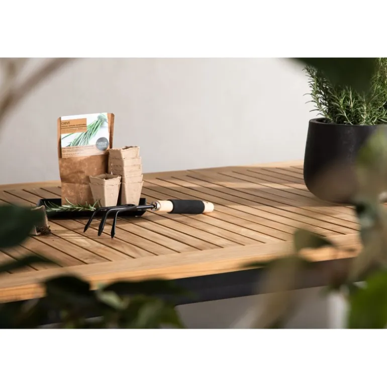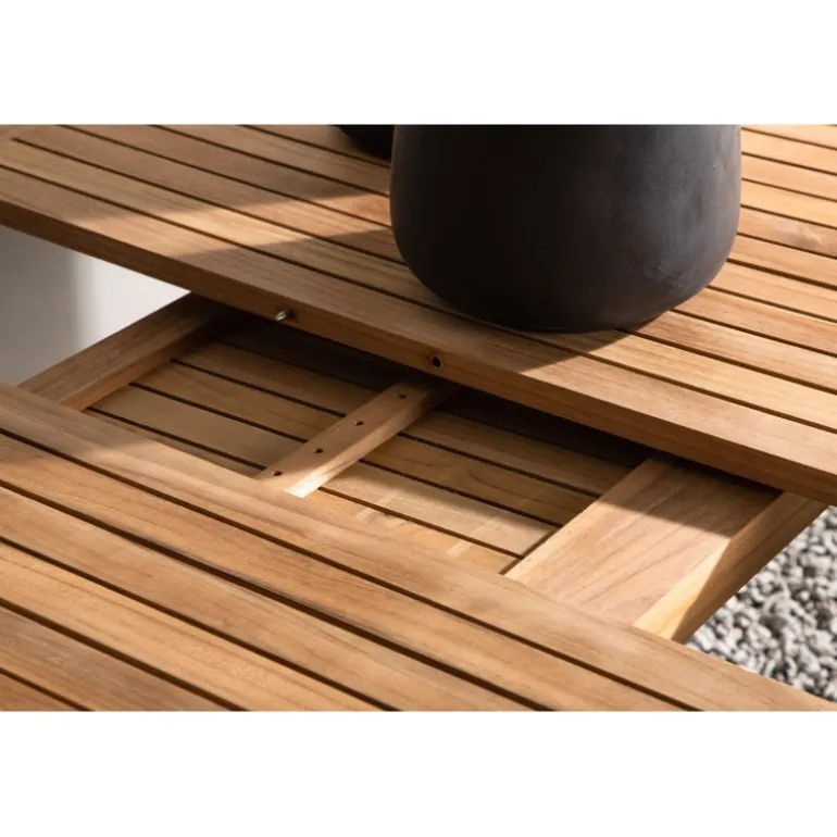 - Teak bordplade: Holdbar og naturligt oliet for lang levetid.