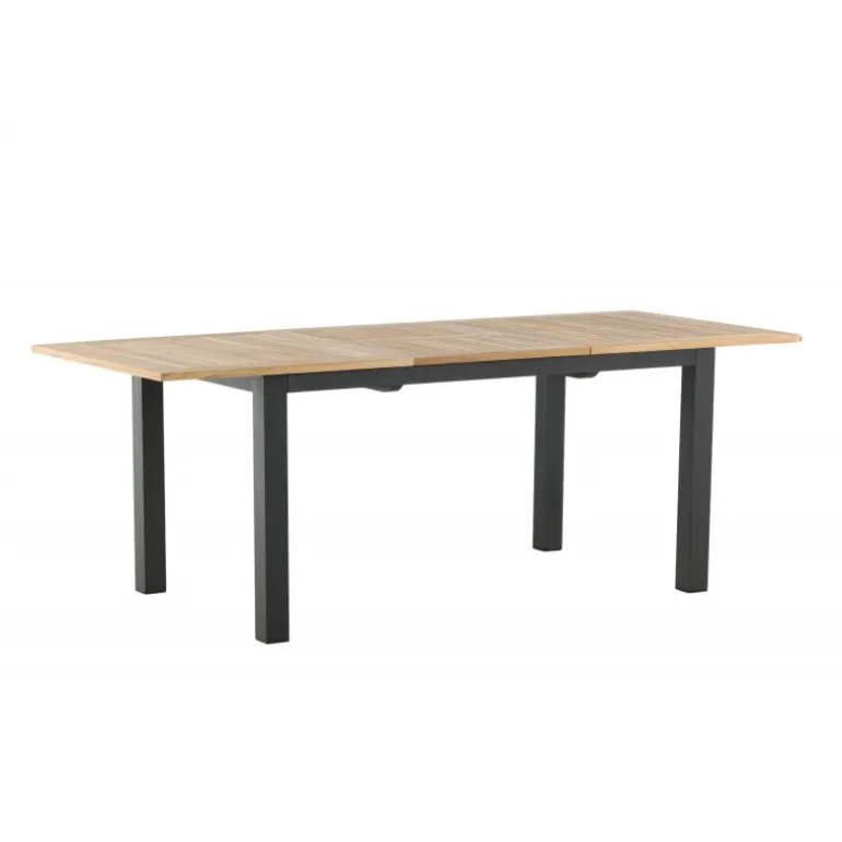 Smart, stilfuldt og holdbart spisebord – hvad mere kan du ønske dig til sommerens udendørs måltider? Panama er et udtrækkeligt spisebord i rektangulær form. Bordpladen er i smukt teak og understellet i sort metal; To enkle og holdbare materialer, der giver dig et robust spisebord. Den praktiske størrelse gør, at bordet fungerer perfekt til både små og store fester. Så gør dig klar til sommernætter og skab et charmerende centrum på terrassen, hvor familien kan samles! Plejevejledning: Vores teakmøbler er produceret af certificeret teak, som dyrkes til formålet og ikke ødelægges fra sarte regnskove. Som en af de mest holdbare træsorter indeholder teak meget olie, hvilket er nødvendigt for at materialet ikke revner. Fordi træsorten naturligt indeholder meget, behøver møblerne ikke at blive imprægneret så ofte.