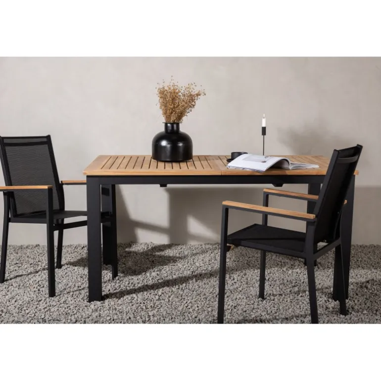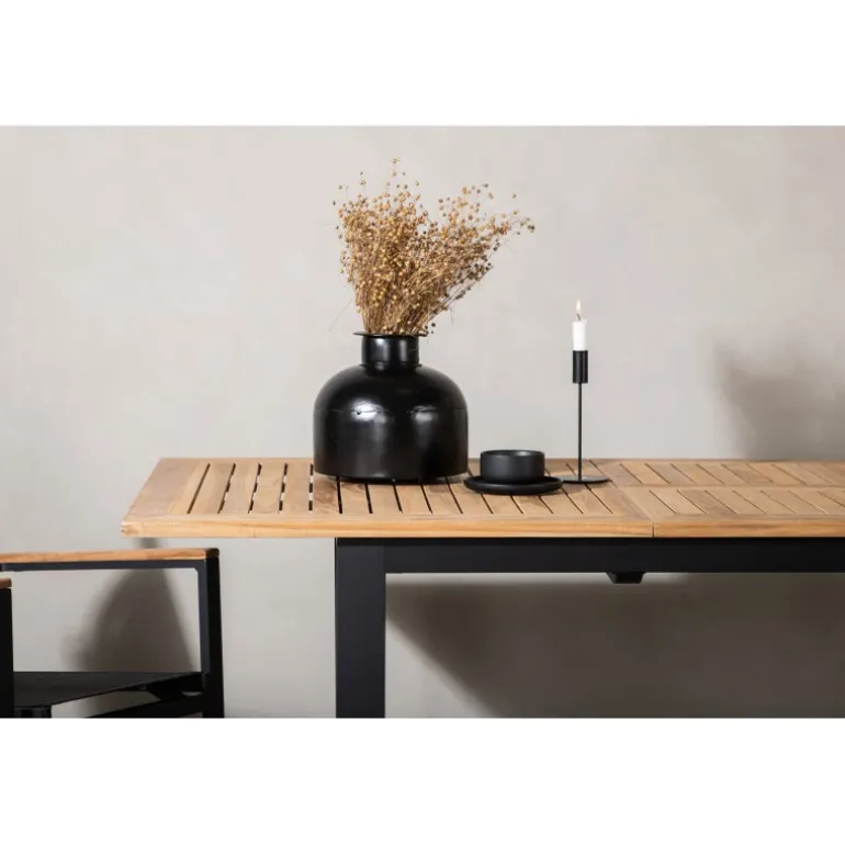 - Materiale: Smuk teak bordplade og sort metal understel.