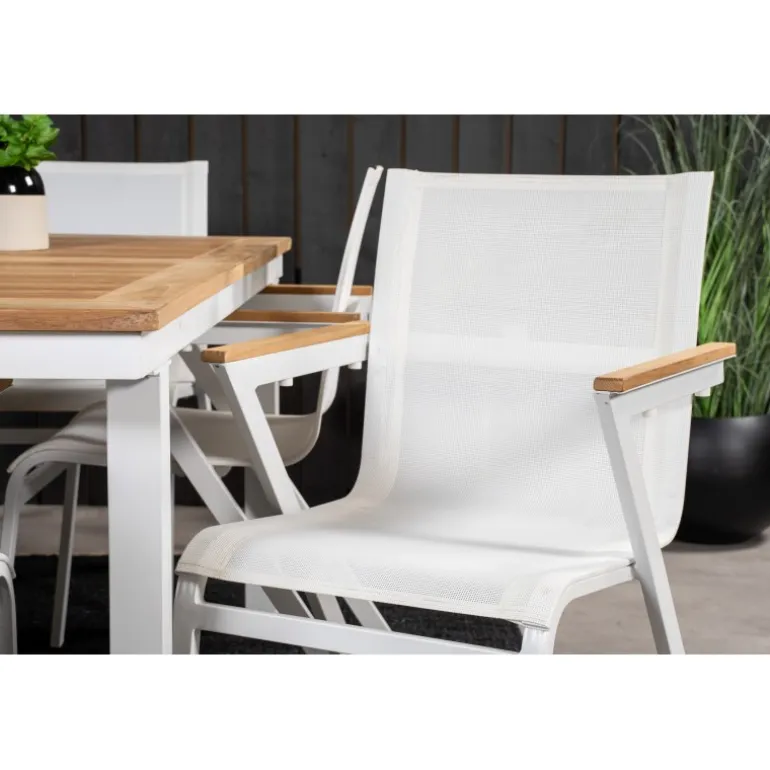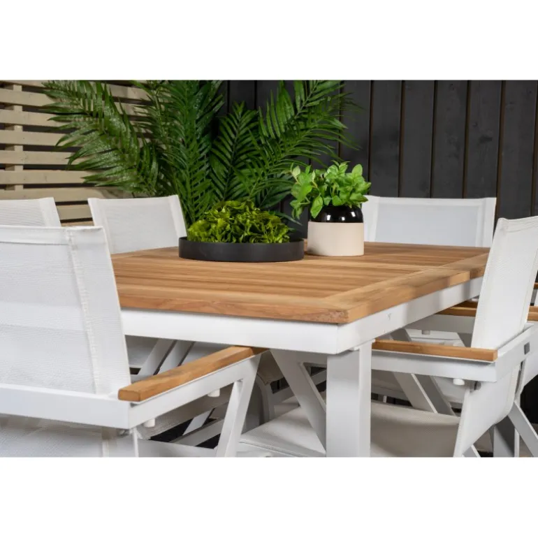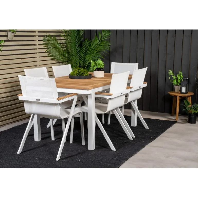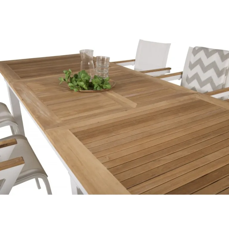 Oplev den klassiske charme med vores Panama Rektangulære Loungesæt – Havemøbelsæt. Dette sæt inkluderer et udvideligt spisebord med en smuk teakbordplade og stilfulde stole fra Mexico-serien. Perfekt til dem, der ønsker at skabe en hyggelig og moderne atmosfære i udendørsområdet eller på balkonen. Med materialer af høj kvalitet som aluminium, teak og textilene, tilbyder dette Loungesæt – Havemøbelsæt både holdbarhed og elegance. Fås i farverne natur og hvid.