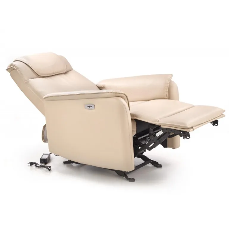 Oplev ultimativ komfort med vores PARADISE lænestol. Denne lænestol er designet med en elektrisk foldemekanisme og en gyngefunktion for at sikre maksimal afslapning. Lavet af miljøvenligt læder i en elegant cremefarve, passer den perfekt ind i enhver indretning. Dens dimensioner er 75/94/103/47 cm, hvilket gør den rummelig og behagelig. Med en nettovægt på 32,500 kg er den både robust og let at placere i dit hjem. Perfekt til enhver stue, hvor komfort og stil går hånd i hånd.